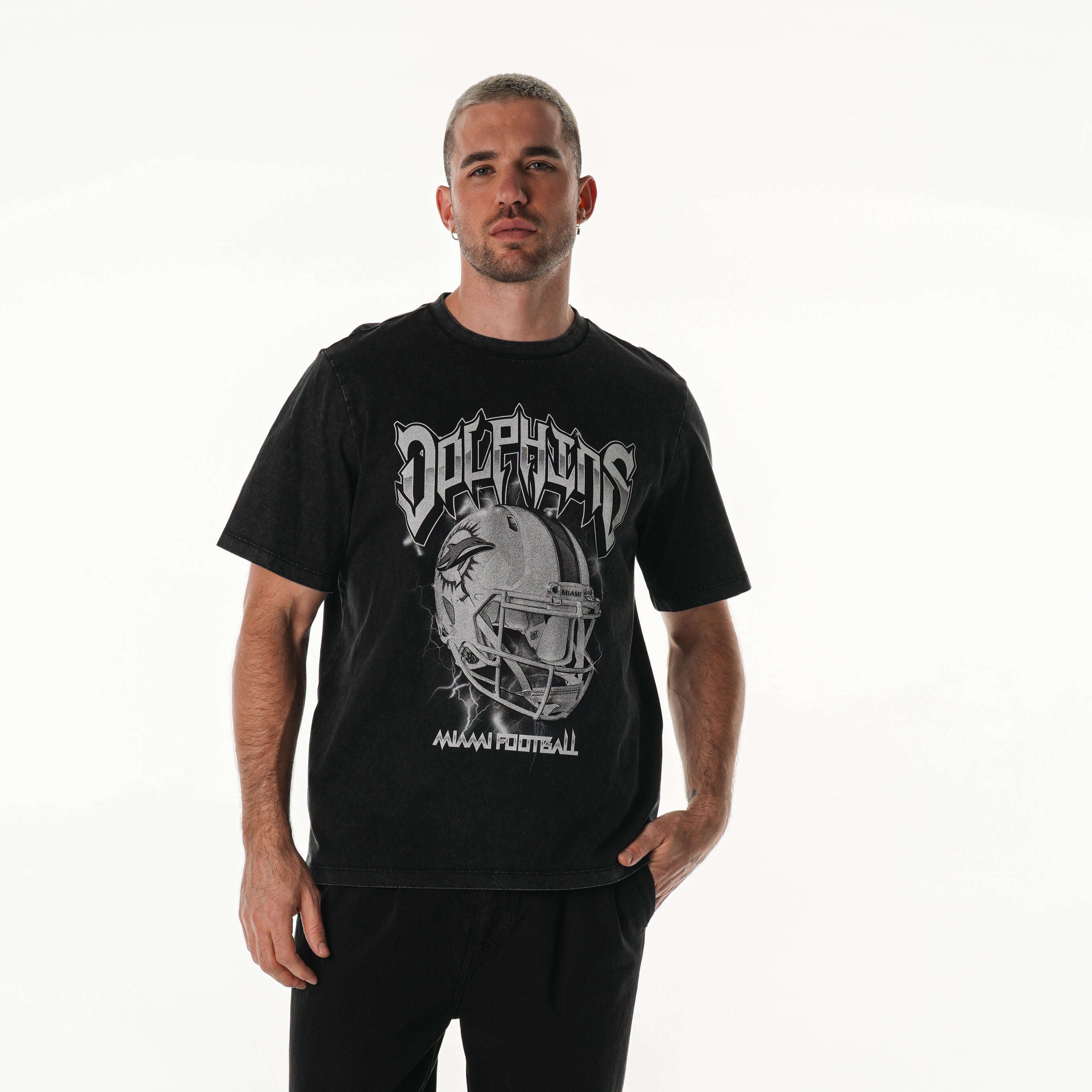 Stand out on game day with this Miami Dolphins tonal tee. Featuring a bold helmet graphic and distressed black wash, it’s an easy piece to rep your team with edge.