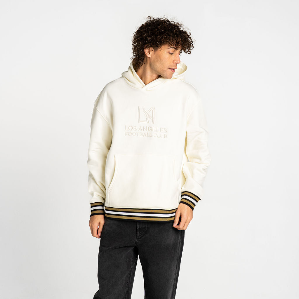 A black ribbed hoodie featuring embroidered Los Angeles FC detailing for a clean, elevated look. The relaxed fit makes it an easy everyday layer. Model is wearing a size large.