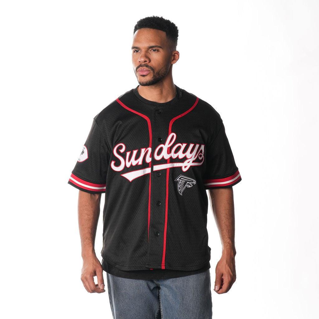 Represent your favorite team in style with the ATLANTA FALCONS SUNDAYS BASEBALL JERSEY in sleek black. Perfect for game day, this jersey offers both comfort and sporty appeal. Show off your team spirit with confidence.