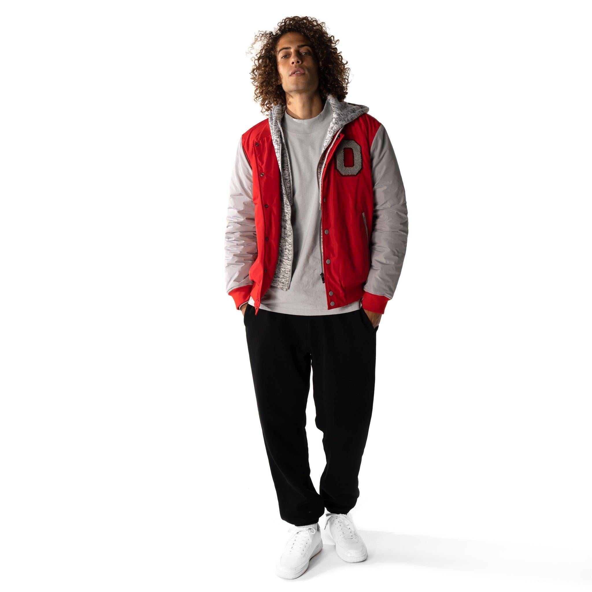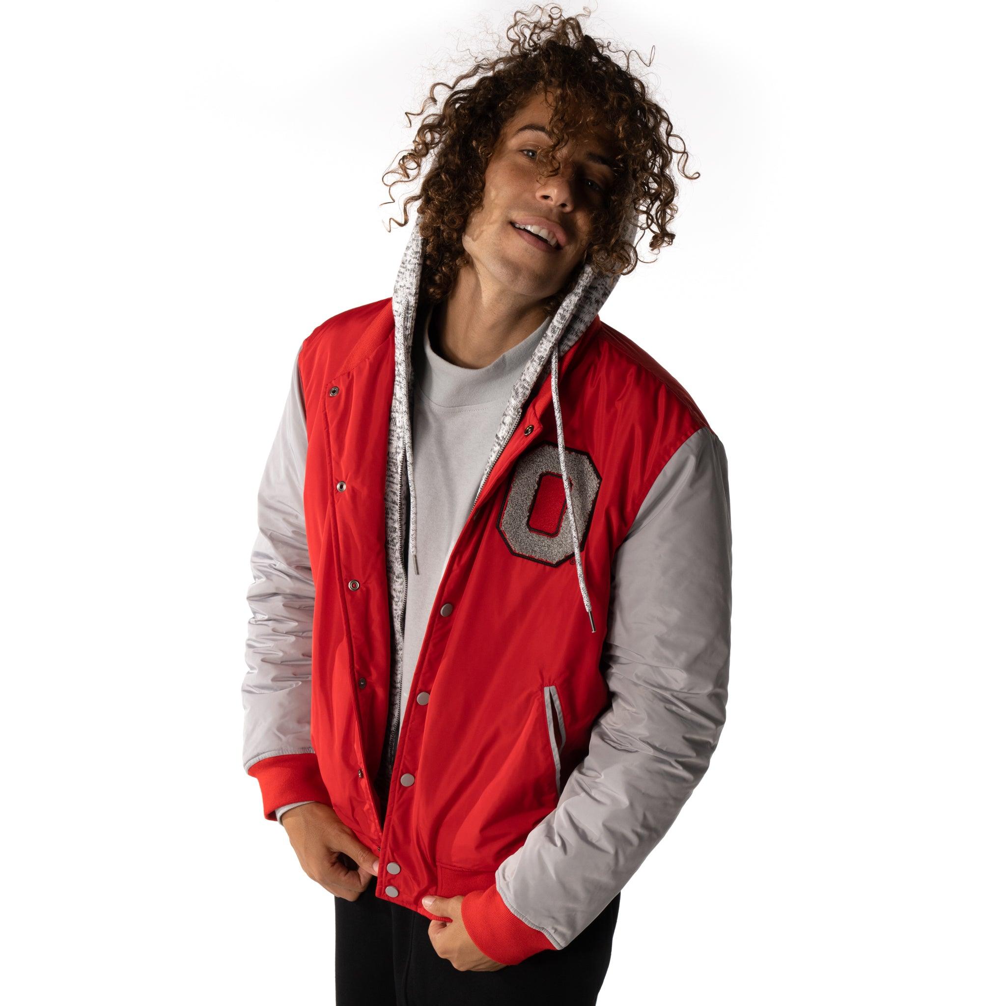 This varsity jacket will be a game day staple this fall. Features a zip out fleece hood.
