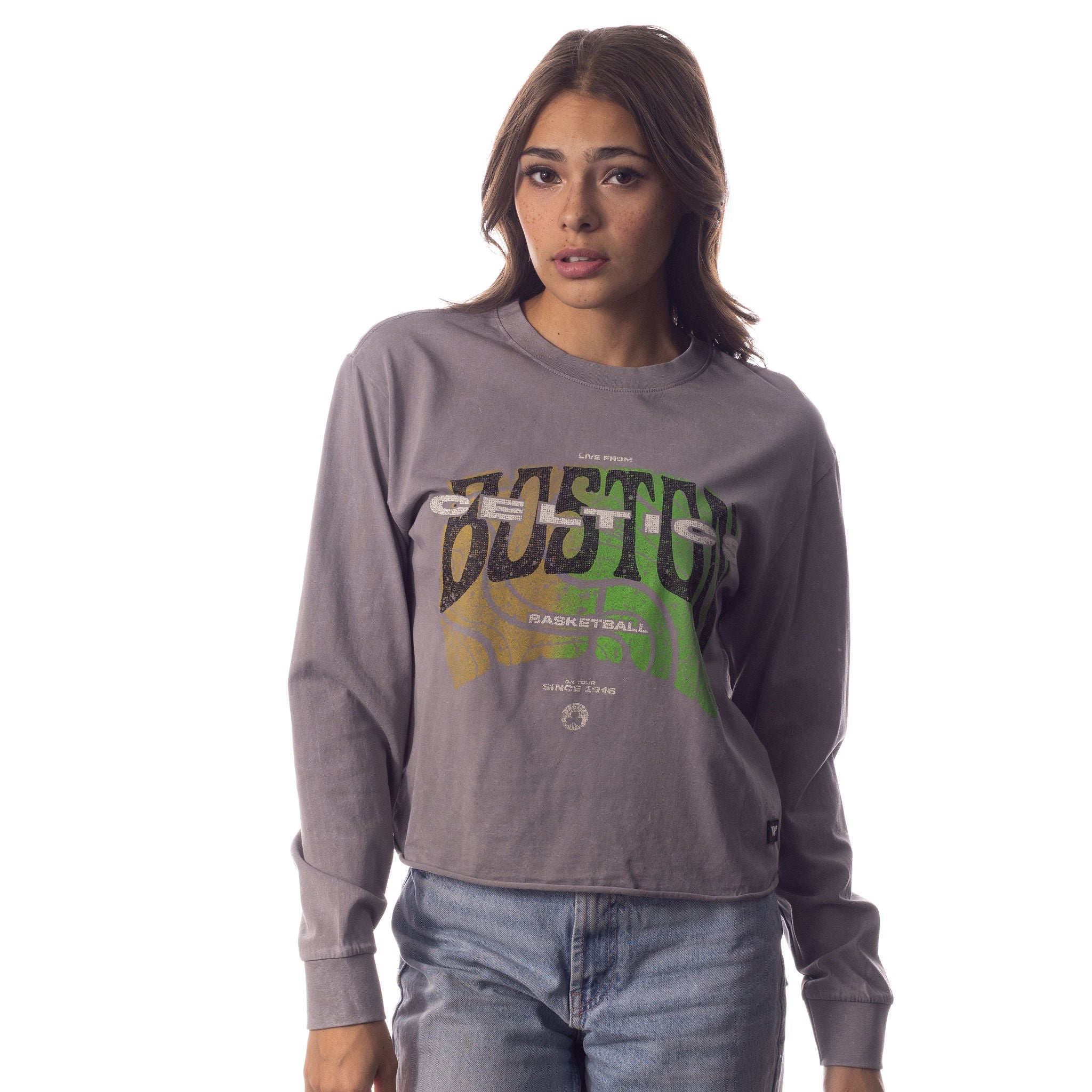 Casual and comfortable, our Boston Celtics Long Sleeve Crop Tee is the latest addition to our NBA collection. Designed with distressed overlays, each tee highlights unique imagery and colors representing the iconic Celtics.
