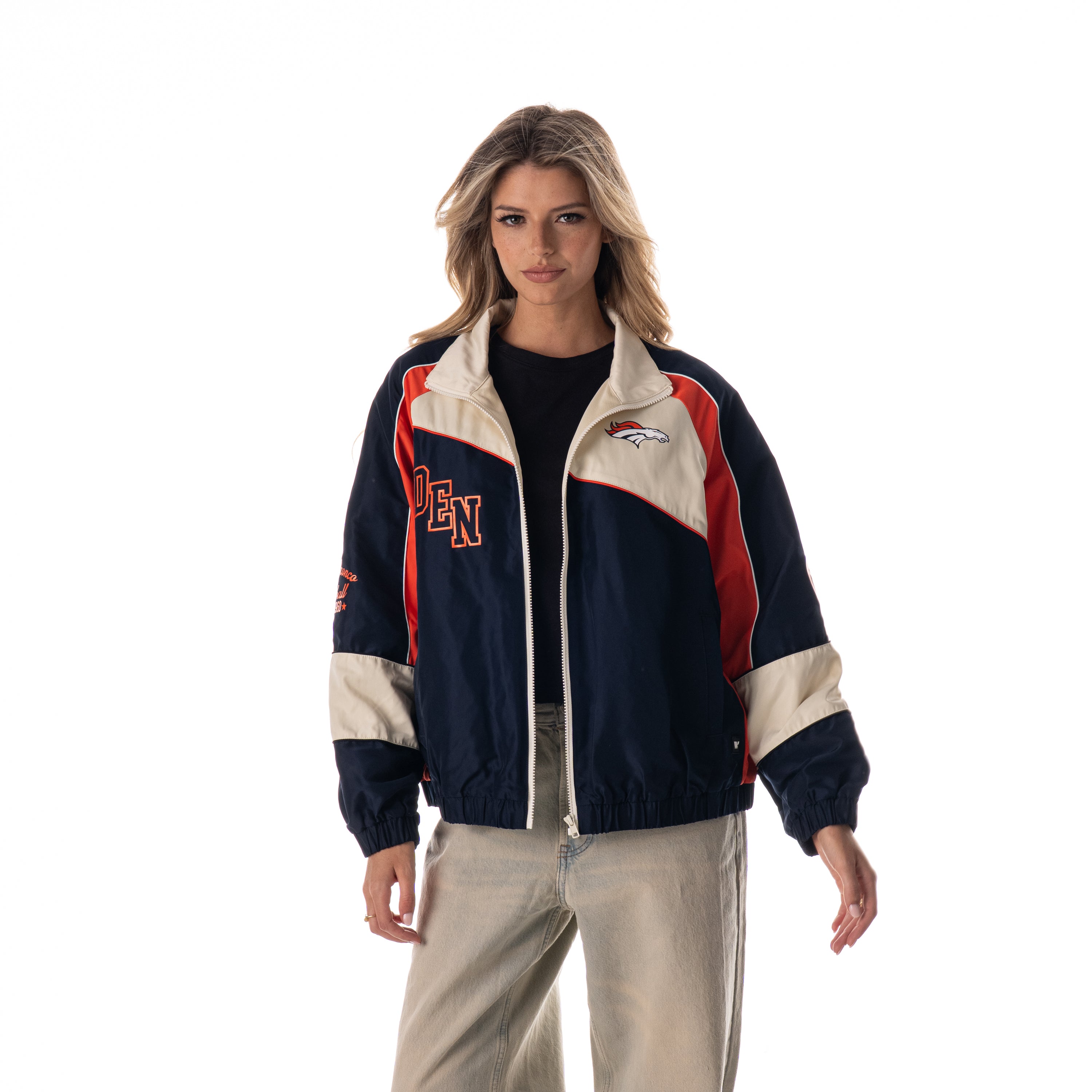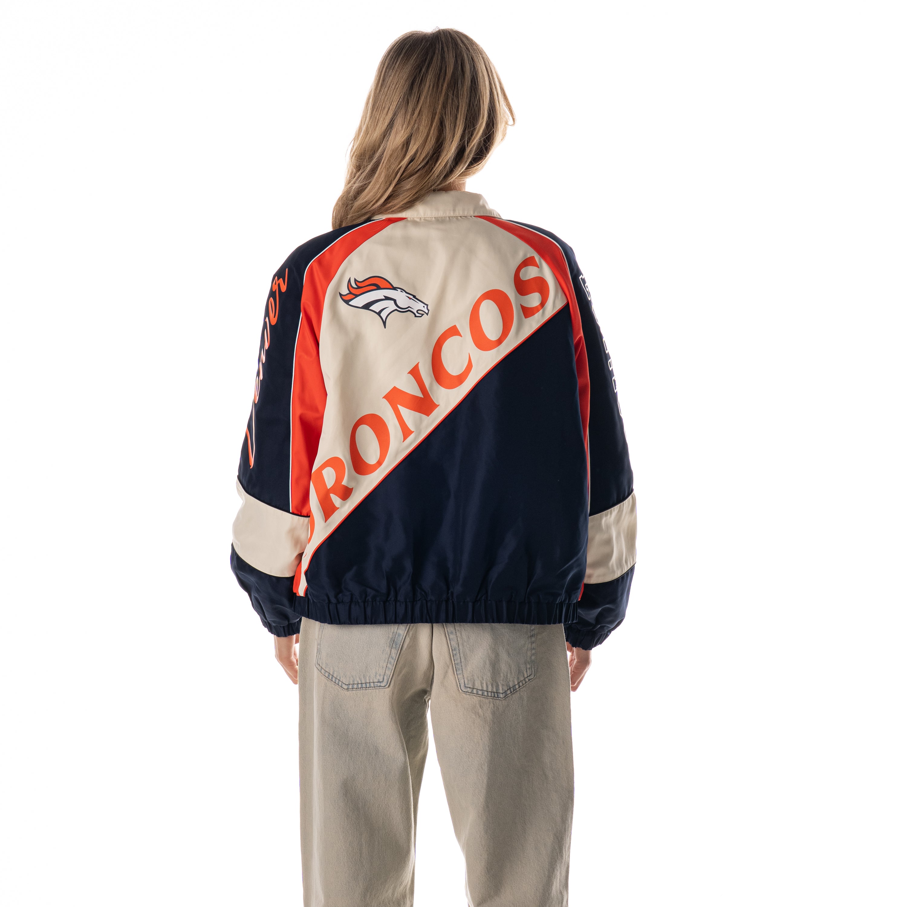 A color-blocked track jacket with an easy, oversized fit and bold Broncos hits on the front and back. Raglan sleeves and the retro stripe details give it that vintage athletic look while still being an everyday layer you can throw on with denim or leggings.
