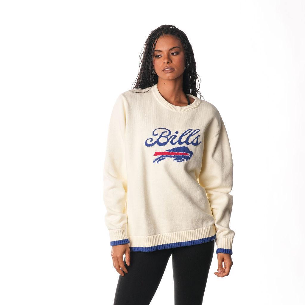 The Buffalo Bills Unisex Crew Sweater in cream offers a cozy, versatile design with bold team graphics. Perfect for staying comfortable while showcasing your Bills pride on game day or any day.