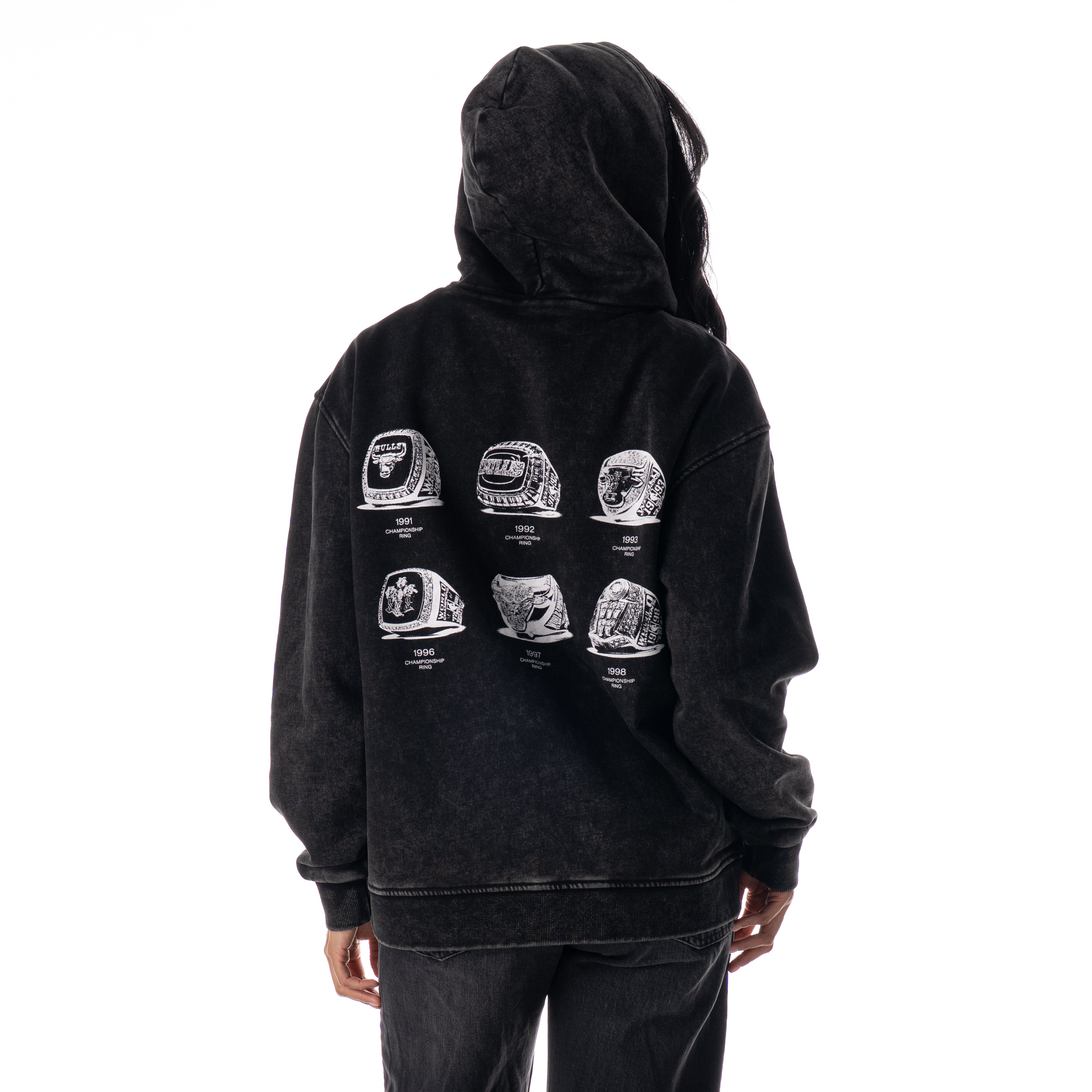 A black hoodie that keeps the Bulls’ legacy front and center. The front stays minimal with a clean graphic, while the back highlights iconic team moments in a bold layout. Soft, easy to wear, and built for everyday rotation.