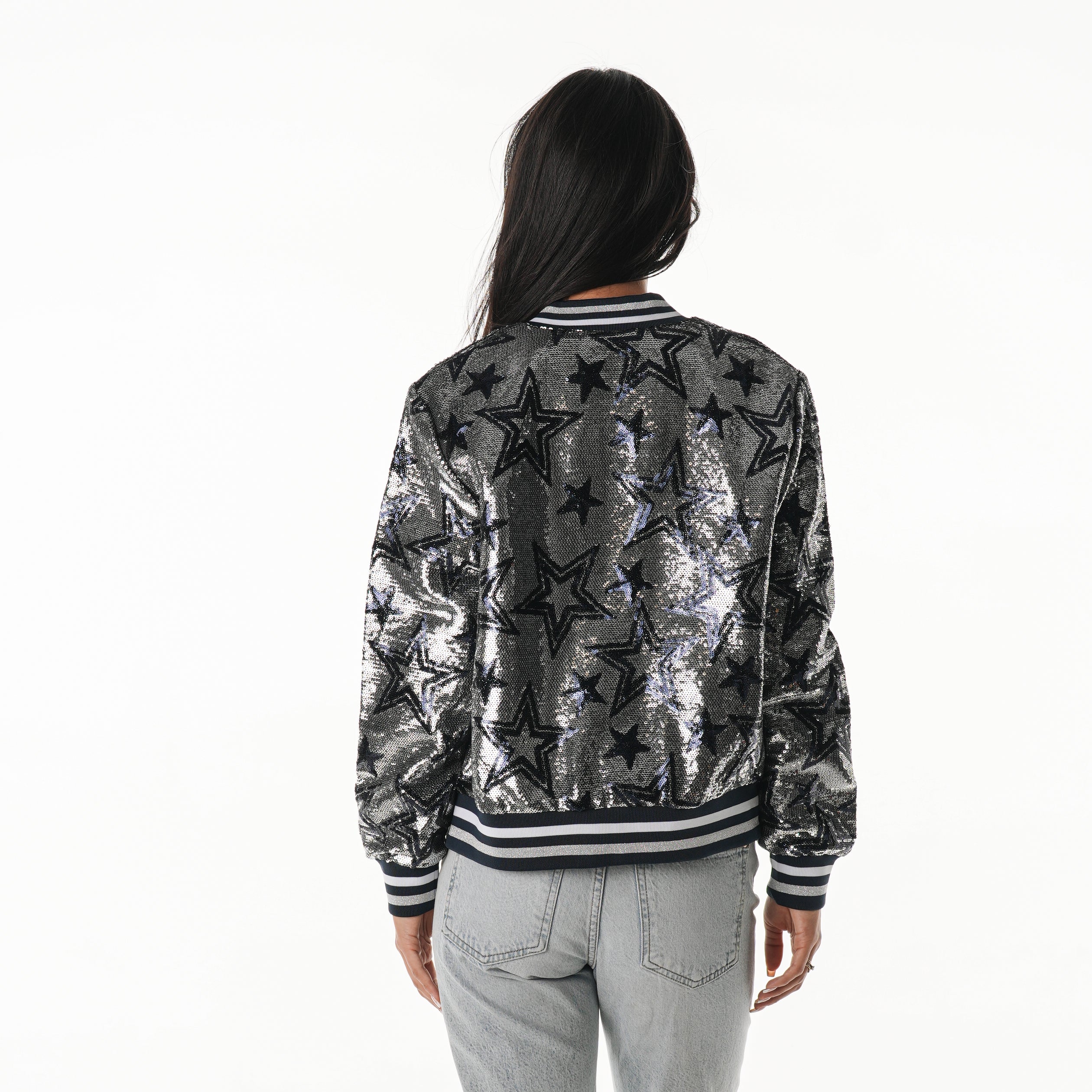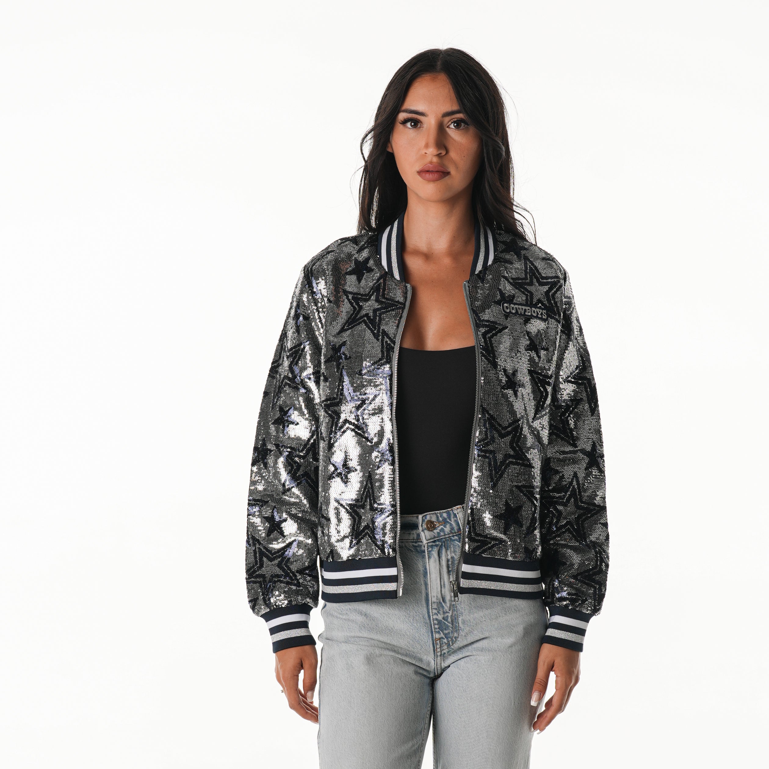 Shine bright on game day with this Cowboys sequin jacket. Designed in silver with all-over star detailing and team accents, it’s a standout piece for true fans.