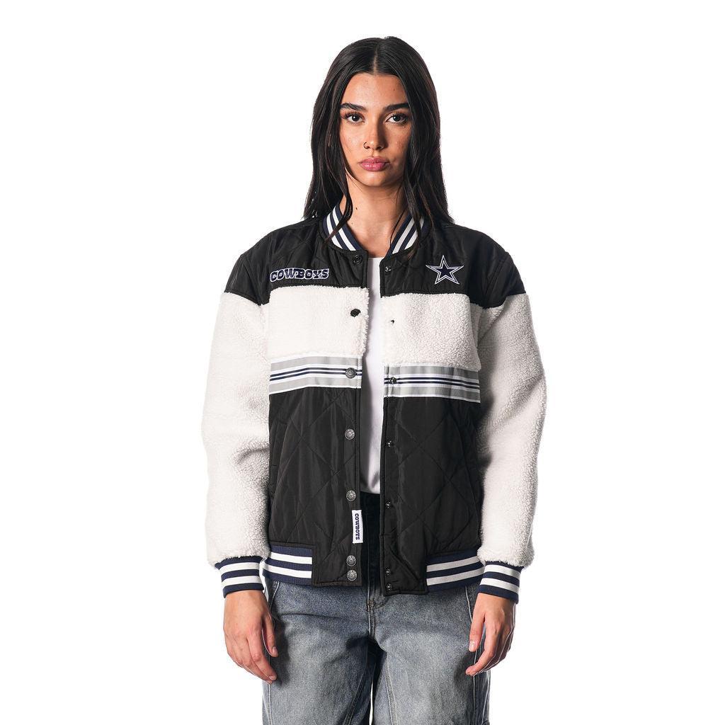 Dallas Cowboys Women's Sherpa Bomber Jacket - Black/Cream