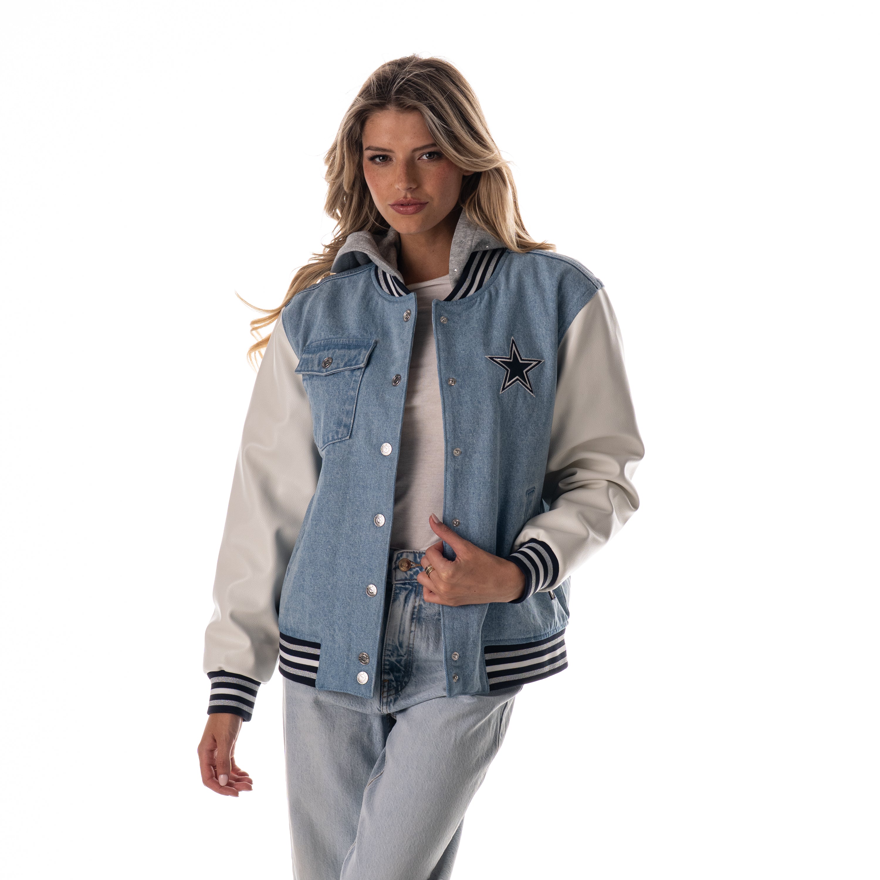 Bring the layers with this Cowboys hooded varsity. Designed with a denim body, contrast sleeves, and a removable grey hood, it’s a versatile piece that reps your team in style.