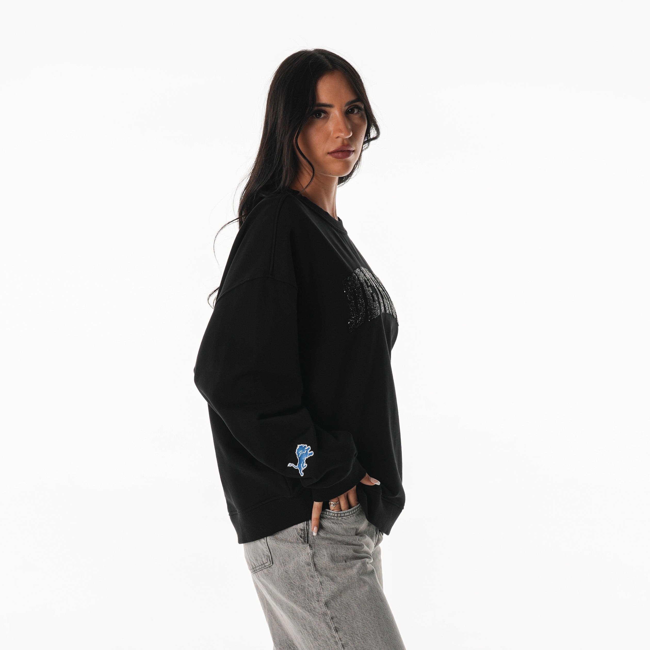 Rep Detroit with standout shine in this crystal rock crew neck fleece. Designed in black with an oversized "Detroit" front detail and team logo on the sleeve, it’s the perfect mix of sleek and spirited. Soft fleece fabric makes it a go-to for game day or everyday wear.