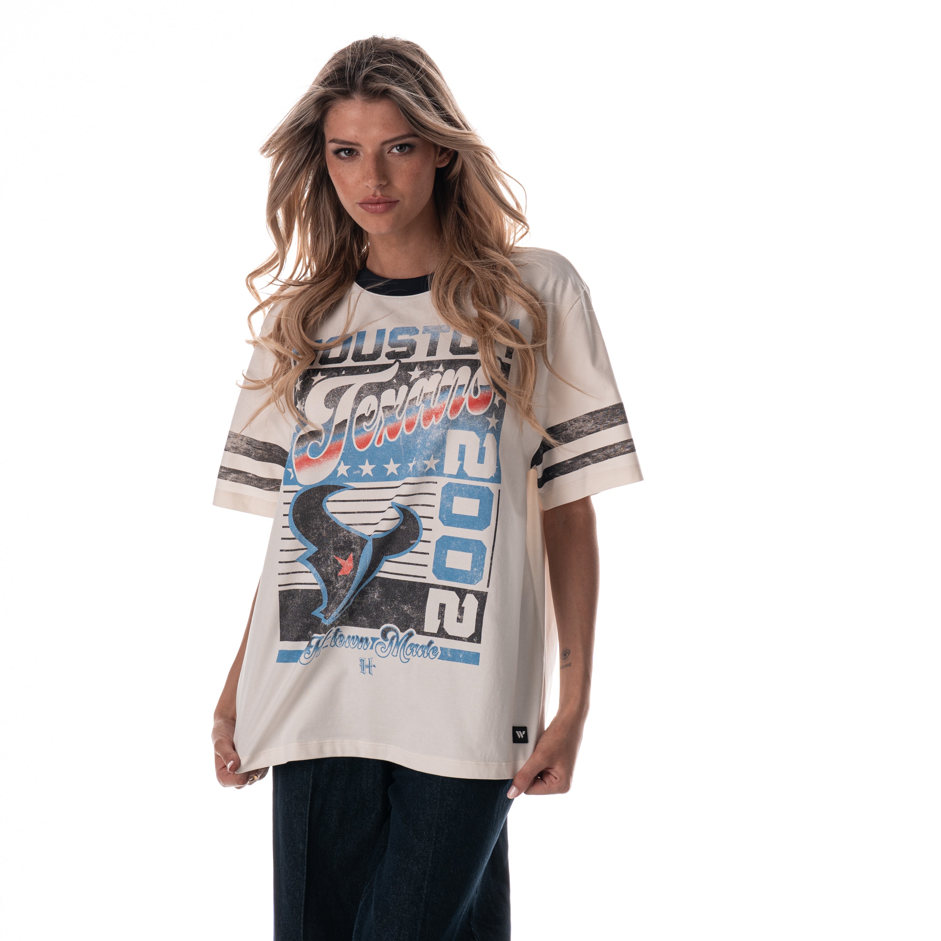 A classic silhouette with vintage flair. This Houston Texans tee features bold retro graphics, contrast sleeve stripes, and a relaxed drop-shoulder fit for effortless style. Made from soft cotton with a worn-in look that feels like a forever favorite.
