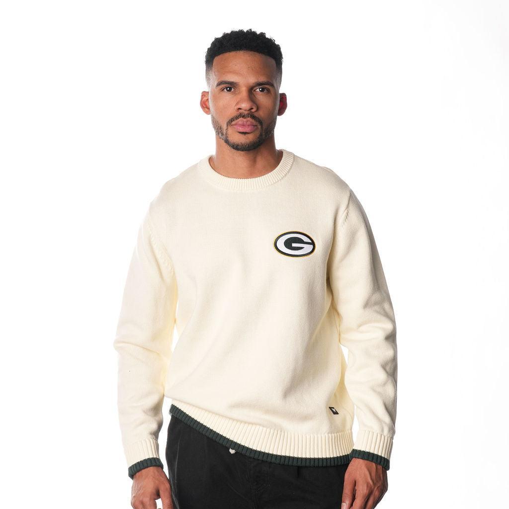 The Green Bay Packers Unisex Jacquard Crewneck Sweater in cream features a premium jacquard knit with bold team accents. Perfect for staying cozy while representing your Packers pride in style.