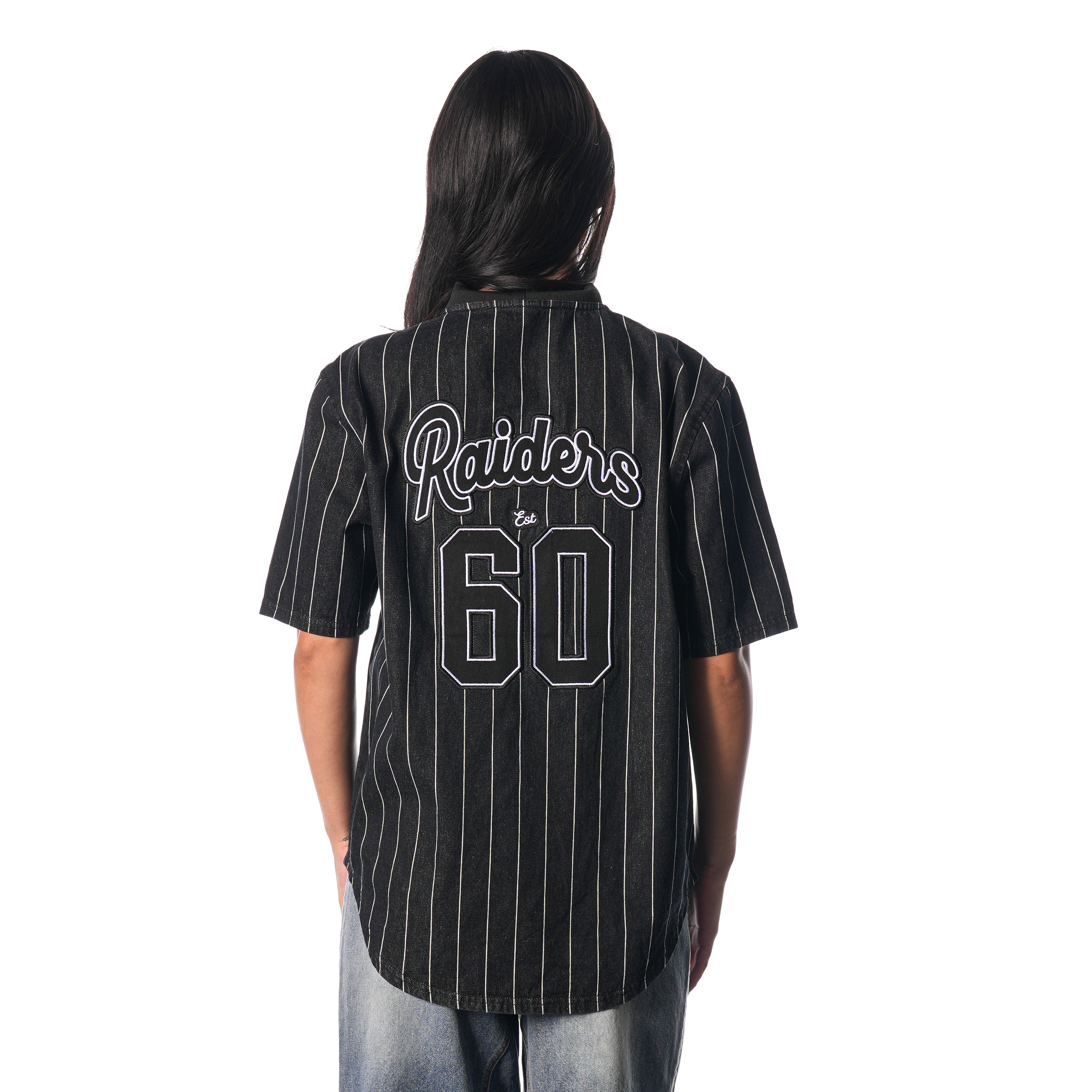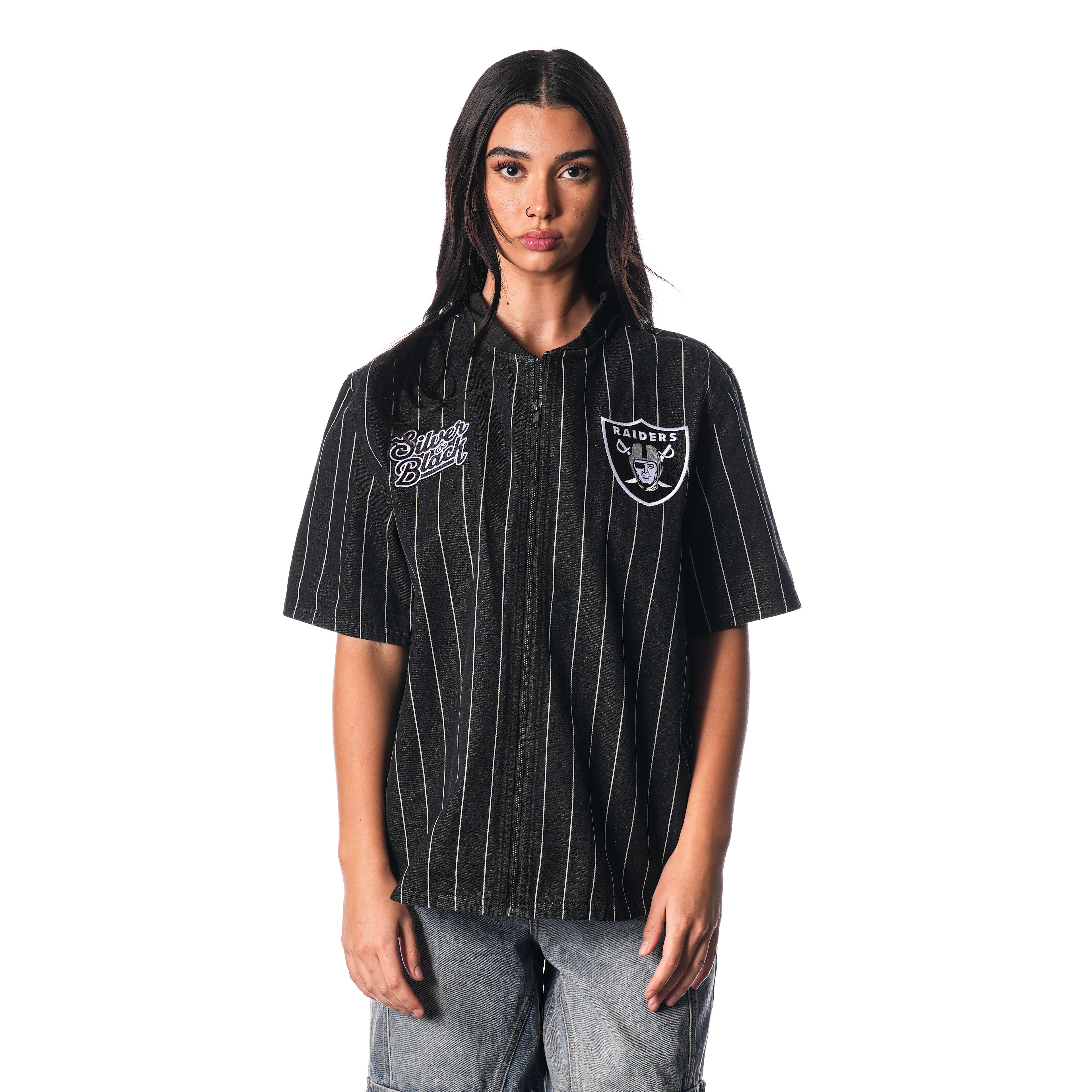 Elevate your game day look with the Las Vegas Raiders Denim Zip Front Shirt. This stylish shirt features a zip front design and bold Raiders graphics, making it the perfect addition to your fan gear. Show your support for your favorite team in style, on and off the field.