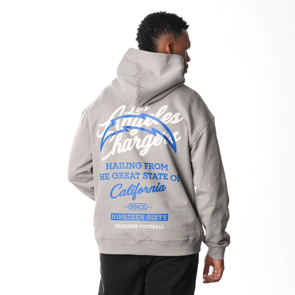 The Los Angeles Chargers Great State Hoodie in grey features a comfortable fit and bold team branding, perfect for showcasing your Chargers pride. Ideal for game day or casual wear.