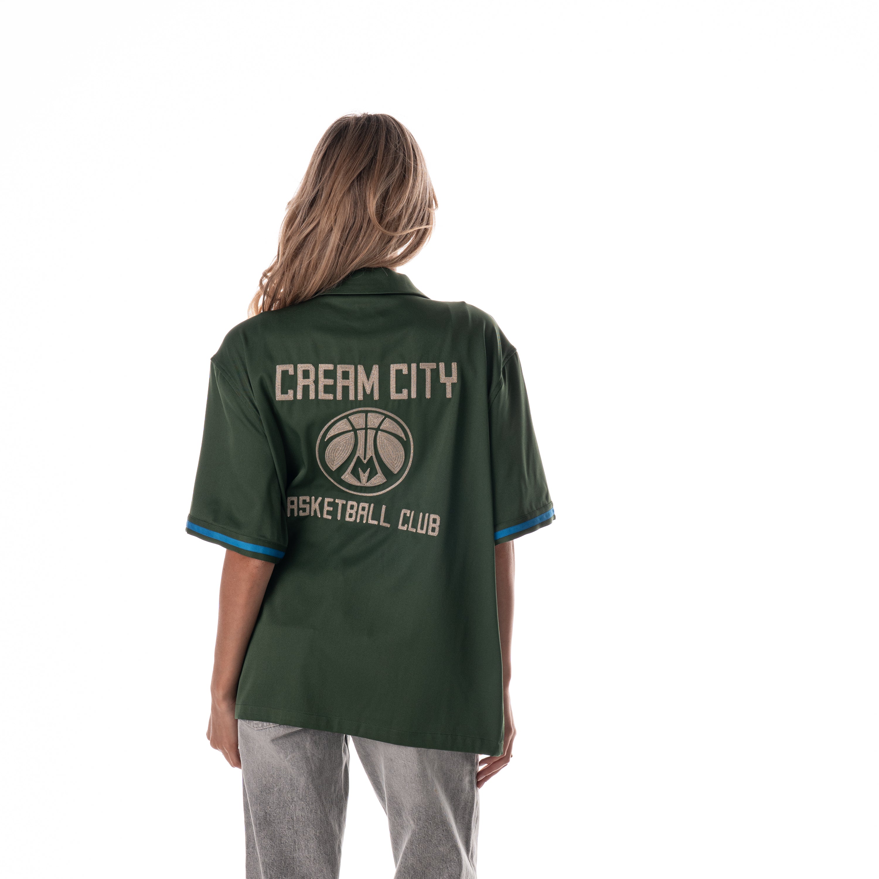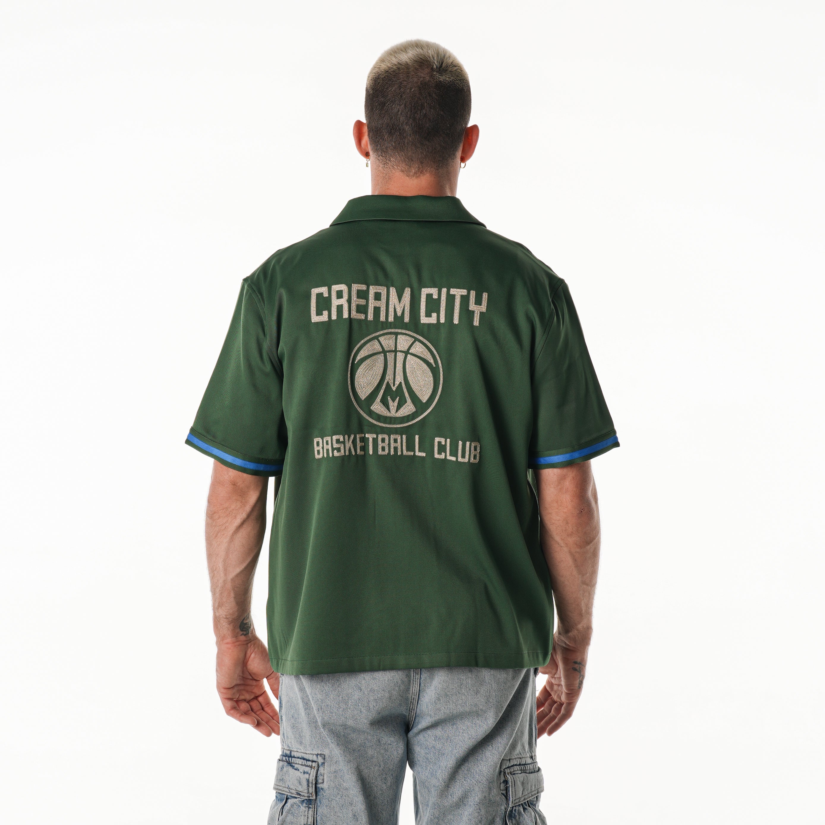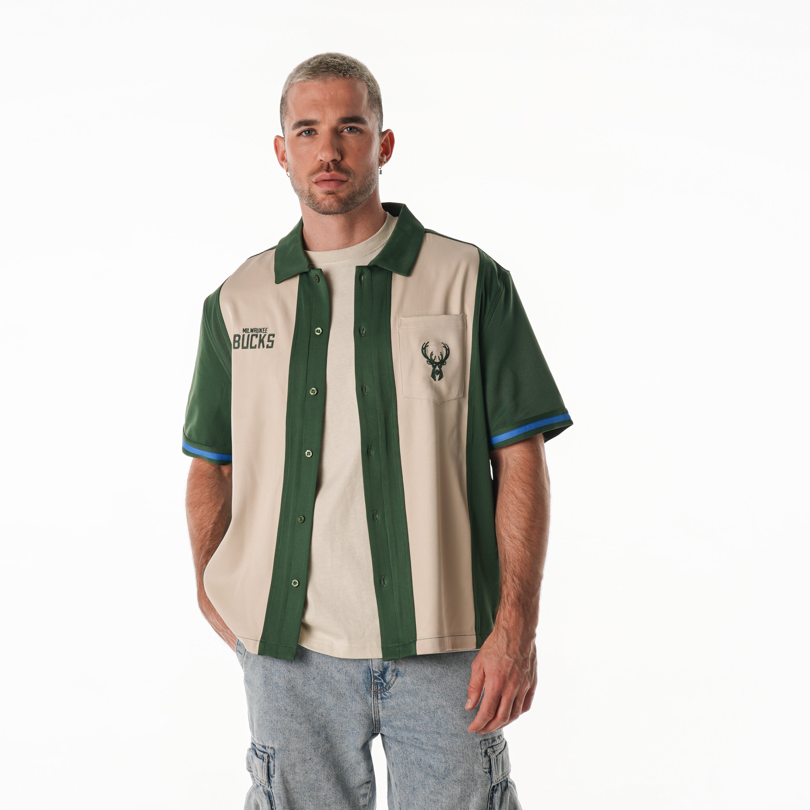 A cream button-down bowler shirt with bold Bucks graphics that give it a clean, retro-inspired look. The front and back both carry strong team hits while the relaxed unisex fit keeps it easy to wear on or off game day.