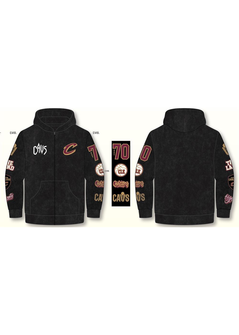 Cleveland Cavs Unisex Logo Sleeve Full Zip Hoodie - Black