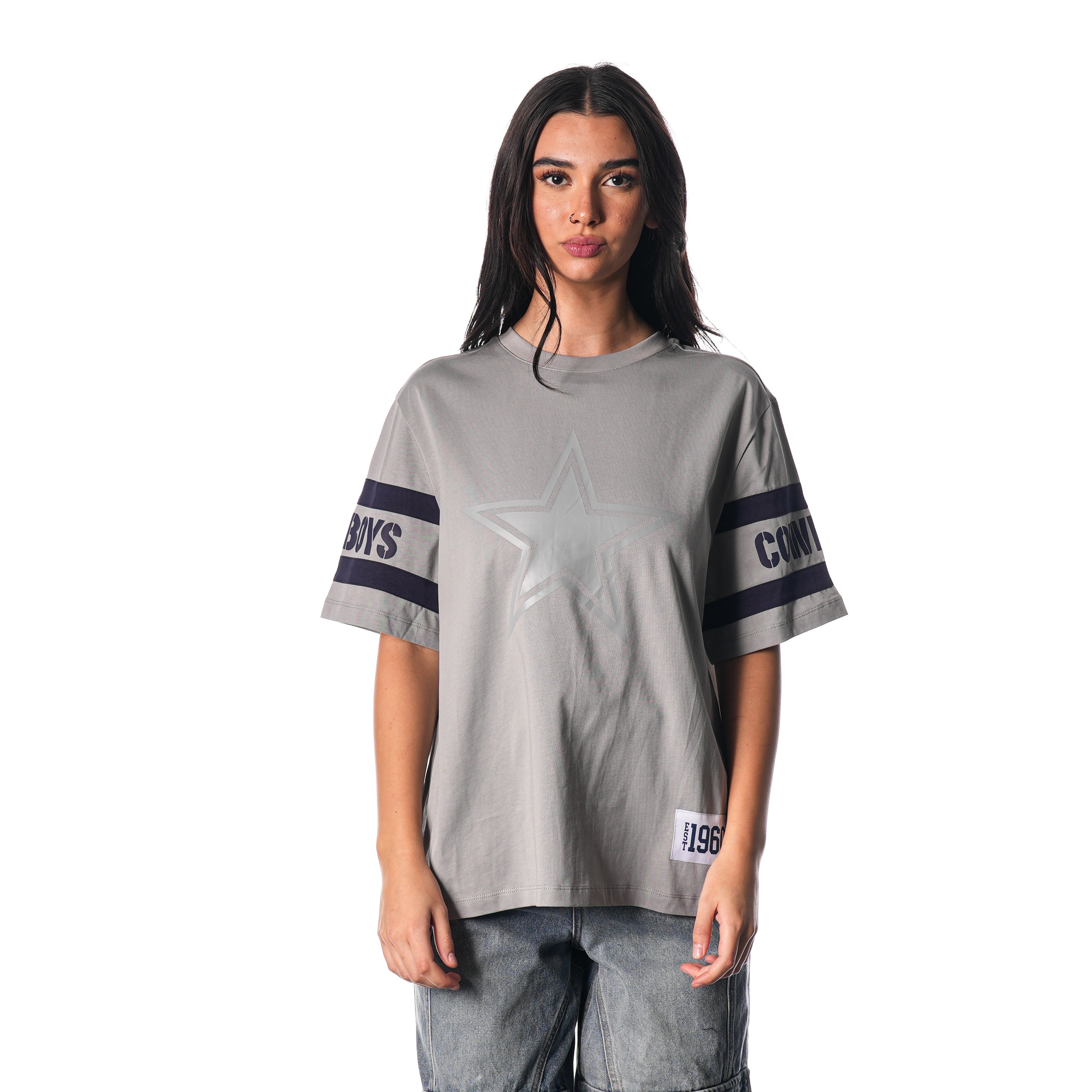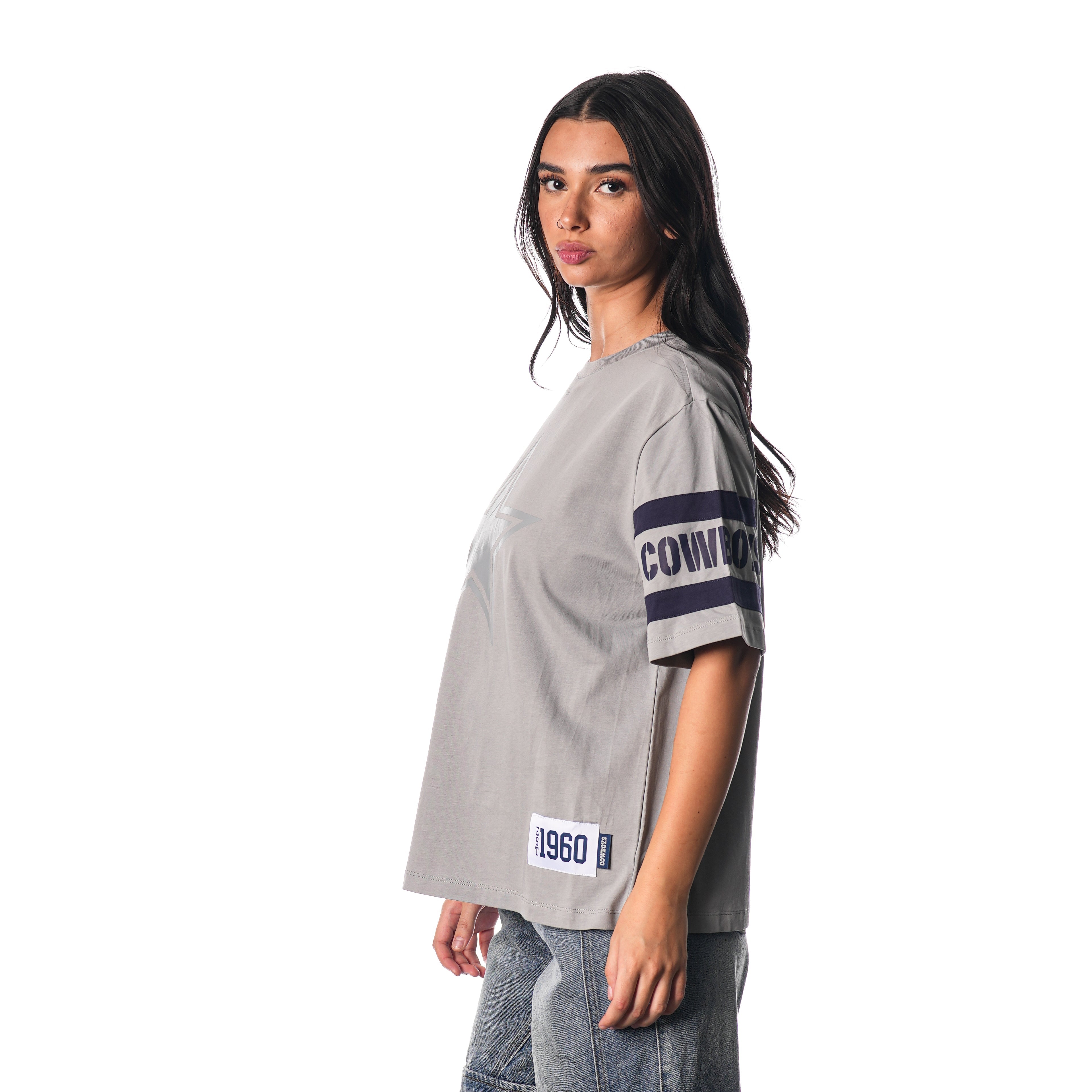 Support your favorite team in style with this DALLAS COWBOYS DROP SHOULDER SS TEE. The grey color and drop shoulder design add a modern touch to your game day outfit while showing off your team pride. Perfect for any diehard Cowboys fan.