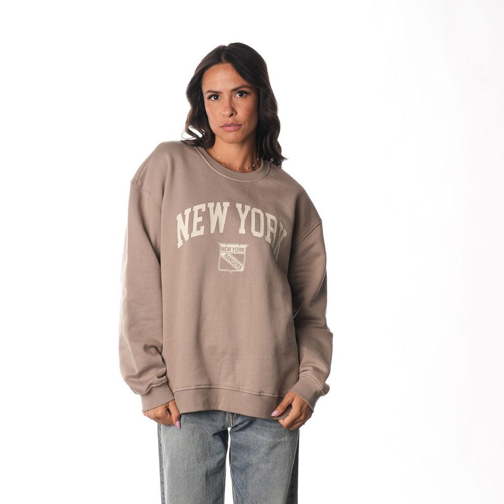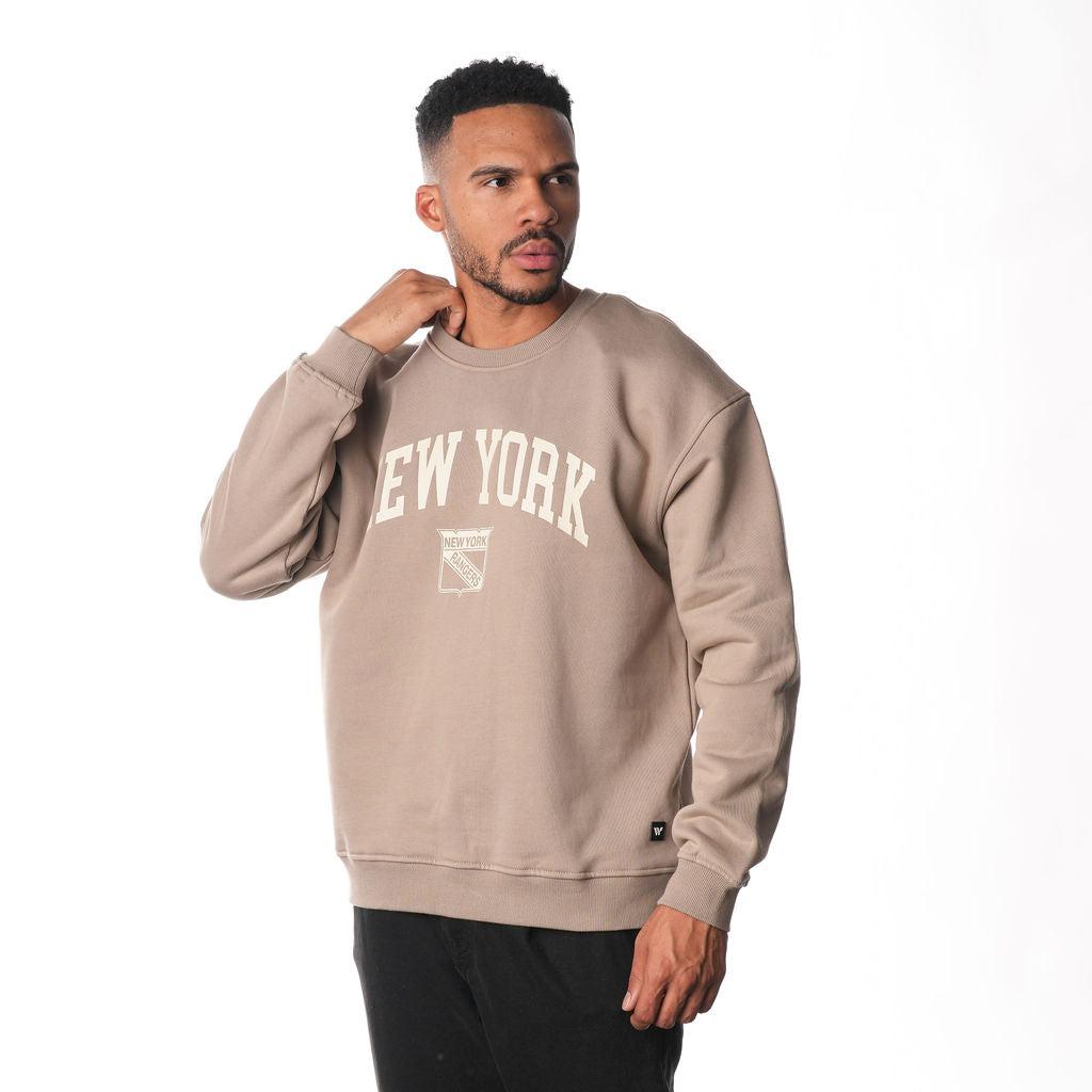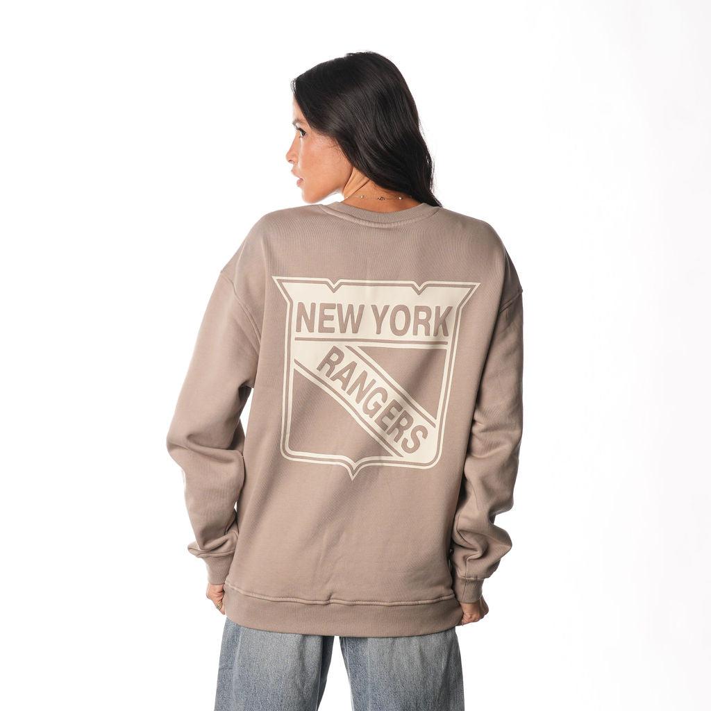 Stay warm and stylish with the NY RANGERS FRONT BACK CREW FLEECE in WARM GREY. Show off your team pride on the front and back, while enjoying the comfort and warmth of the soft fleece material. Perfect for any fan of the NY Rangers.