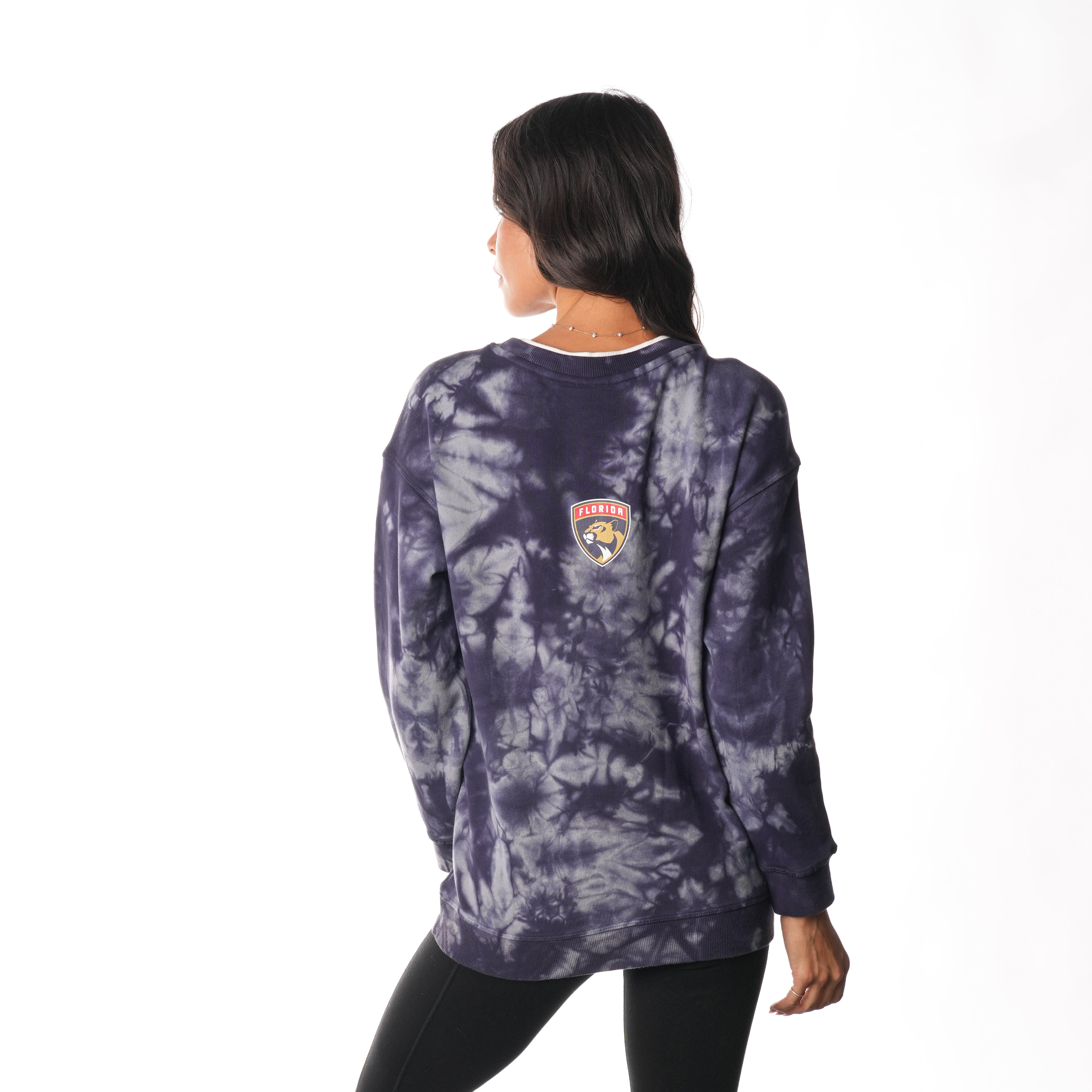 This crewneck does all the talking. Featuring a bold "FLORIDA" front graphic, an official Panthers logo on the back, and a deep navy tie-dye wash, this sweatshirt brings the energy whether you're rink-side or couch-side. Soft, oversized, and made to layer—your fan look just leveled up.