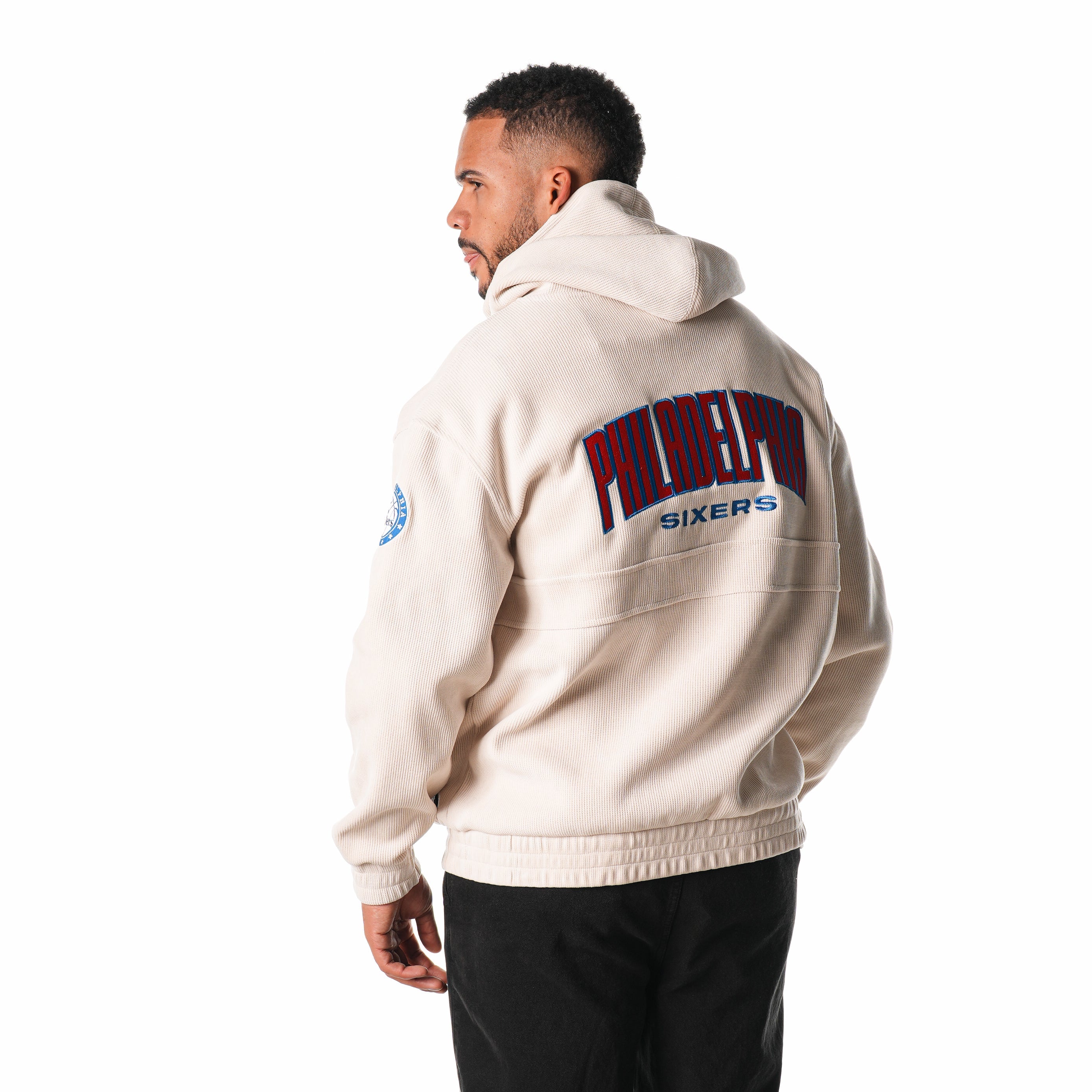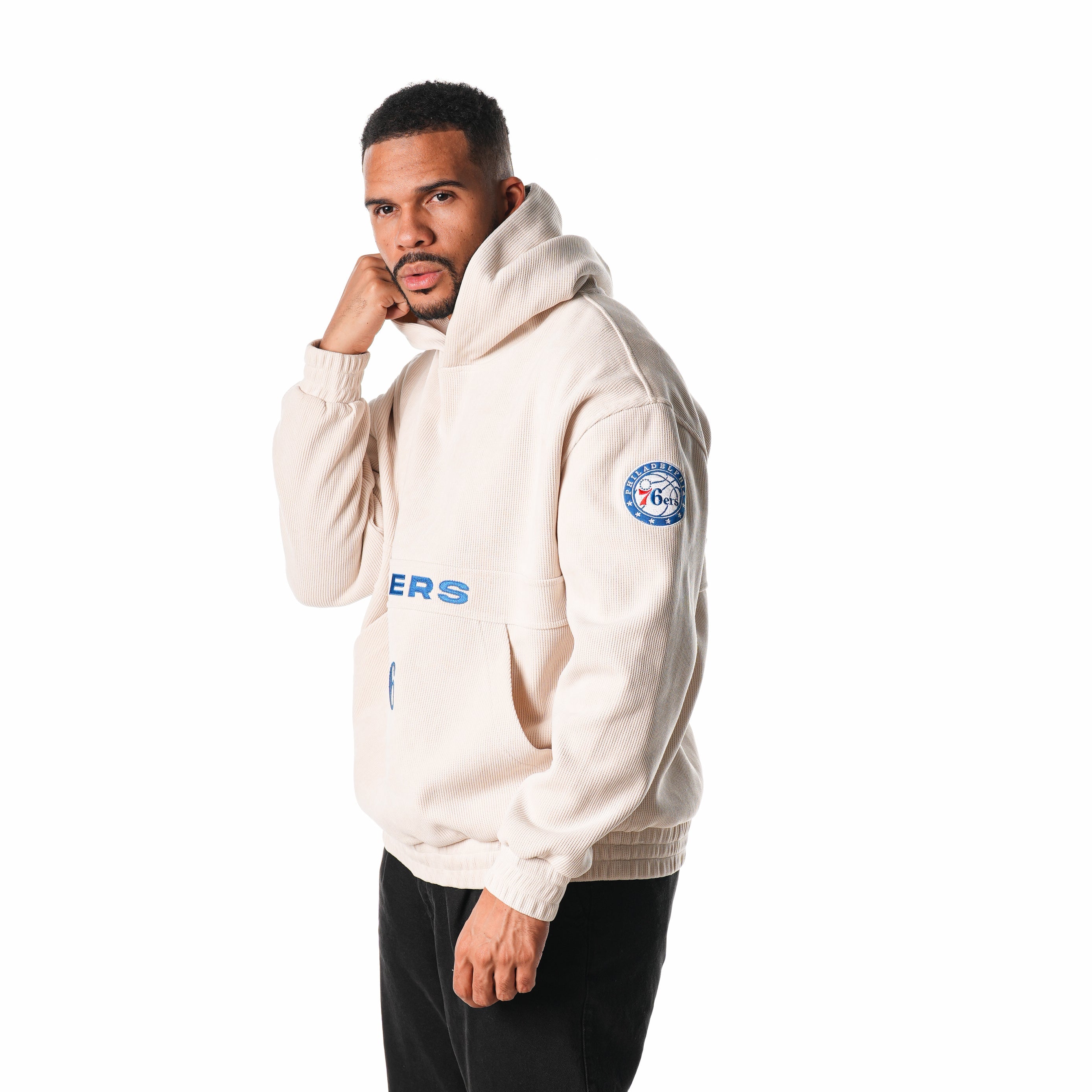 Rep the 76ers in style with the Philadelphia 76ers Unisex Corduroy Hoodie in cream. Made from soft corduroy fabric, this hoodie combines comfort and team spirit, featuring the iconic 76ers branding. Whether it's game day or a casual day out, this hoodie offers a sleek and versatile look that stands out in any setting.