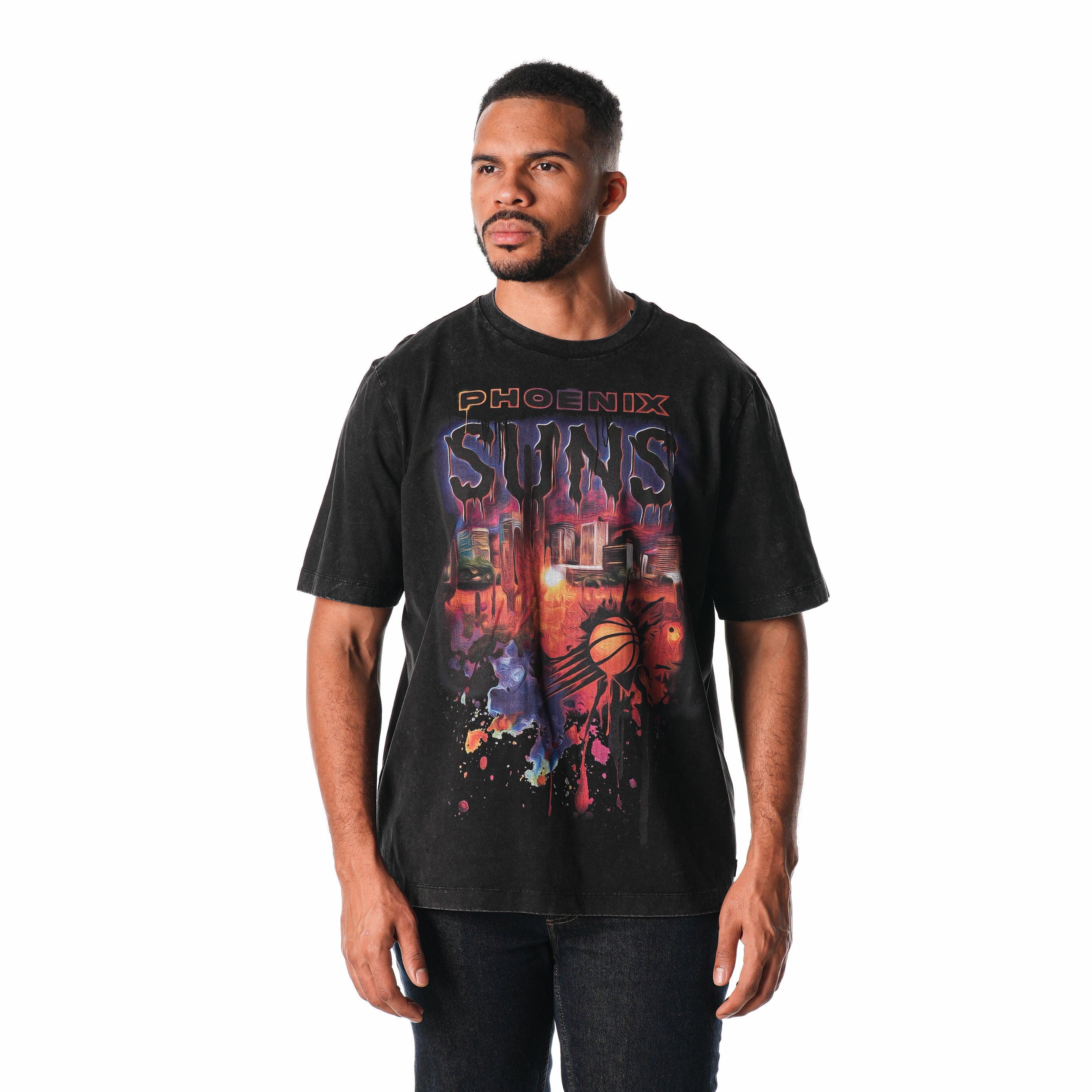 Show off your Suns pride with the Phoenix Suns Skyline Band Tee in black. Featuring a bold skyline graphic and the team’s branding, this tee offers a sleek and modern look. Perfect for game day or casual wear, this versatile tee is a must-have for any Suns fan looking to rep their team in style.