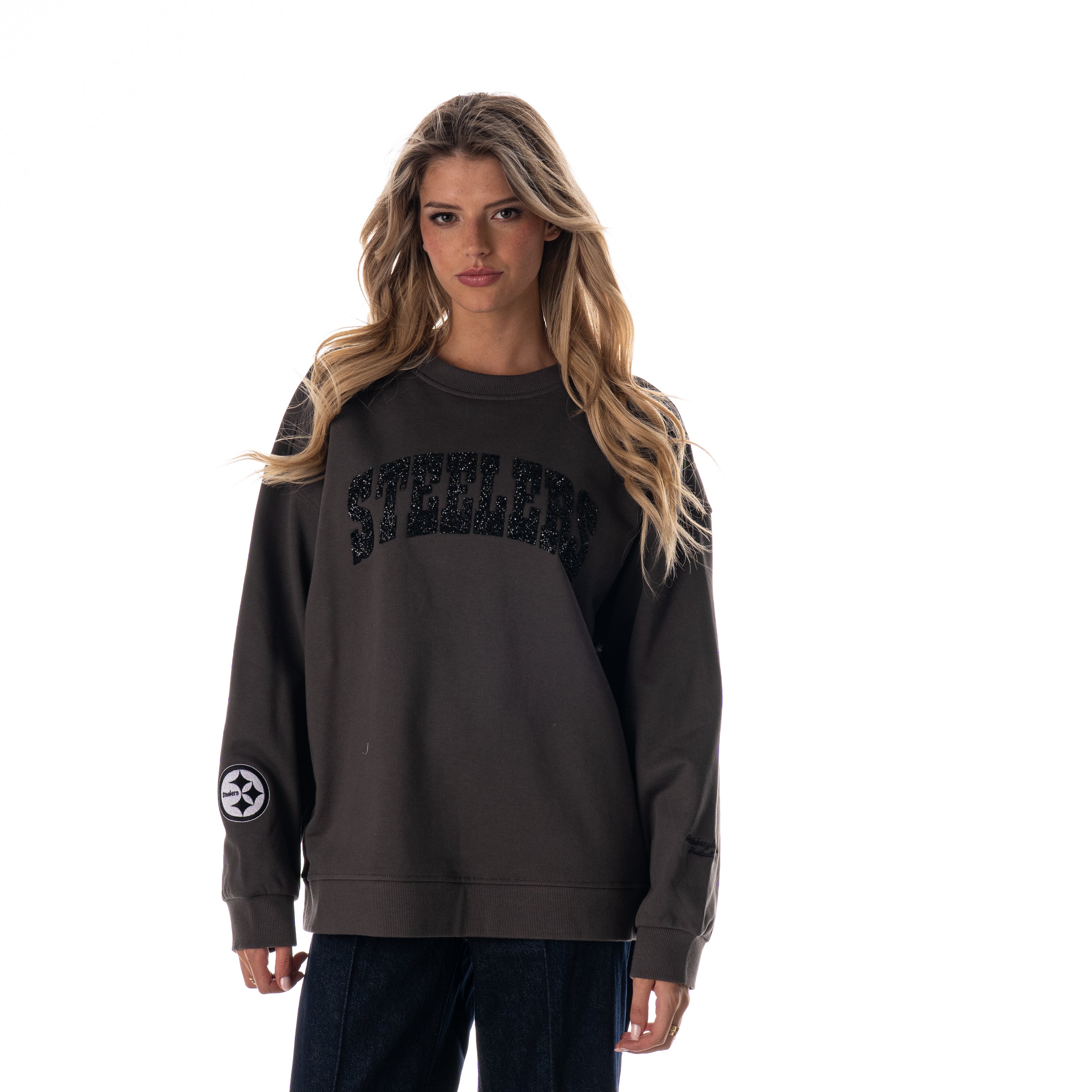 Keep it classic with this Steelers oversized crew. Designed in a versatile grey tone with bold black team lettering across the chest and the Steelers patch on the sleeve, it’s an essential for every fan’s wardrobe.