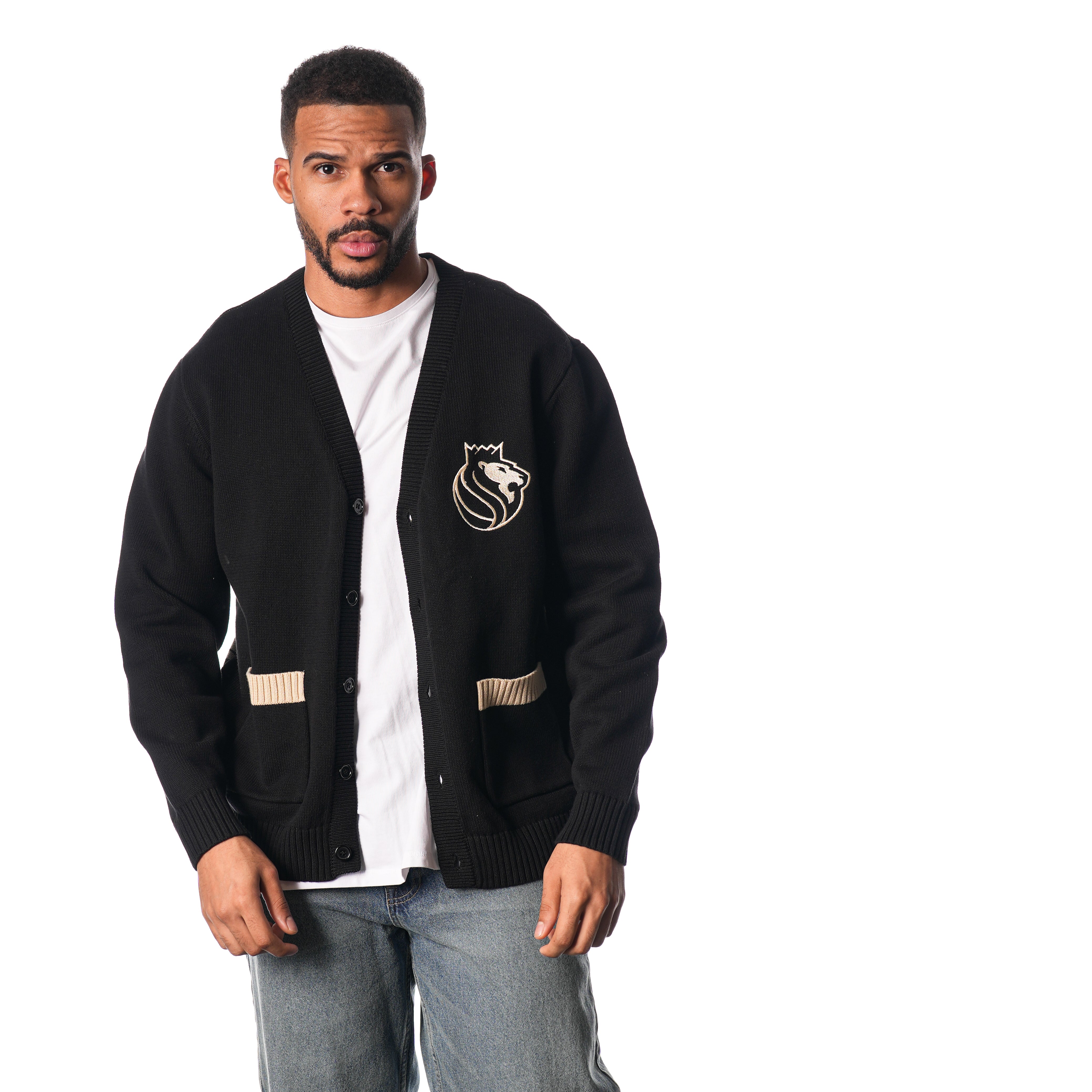 Stay warm and show off your team spirit with the Sacramento Kings Button Front Cardigan in black. This stylish and comfortable cardigan features the team's logo, making it the perfect addition to any game day outfit. Stay cozy while supporting your favorite team.