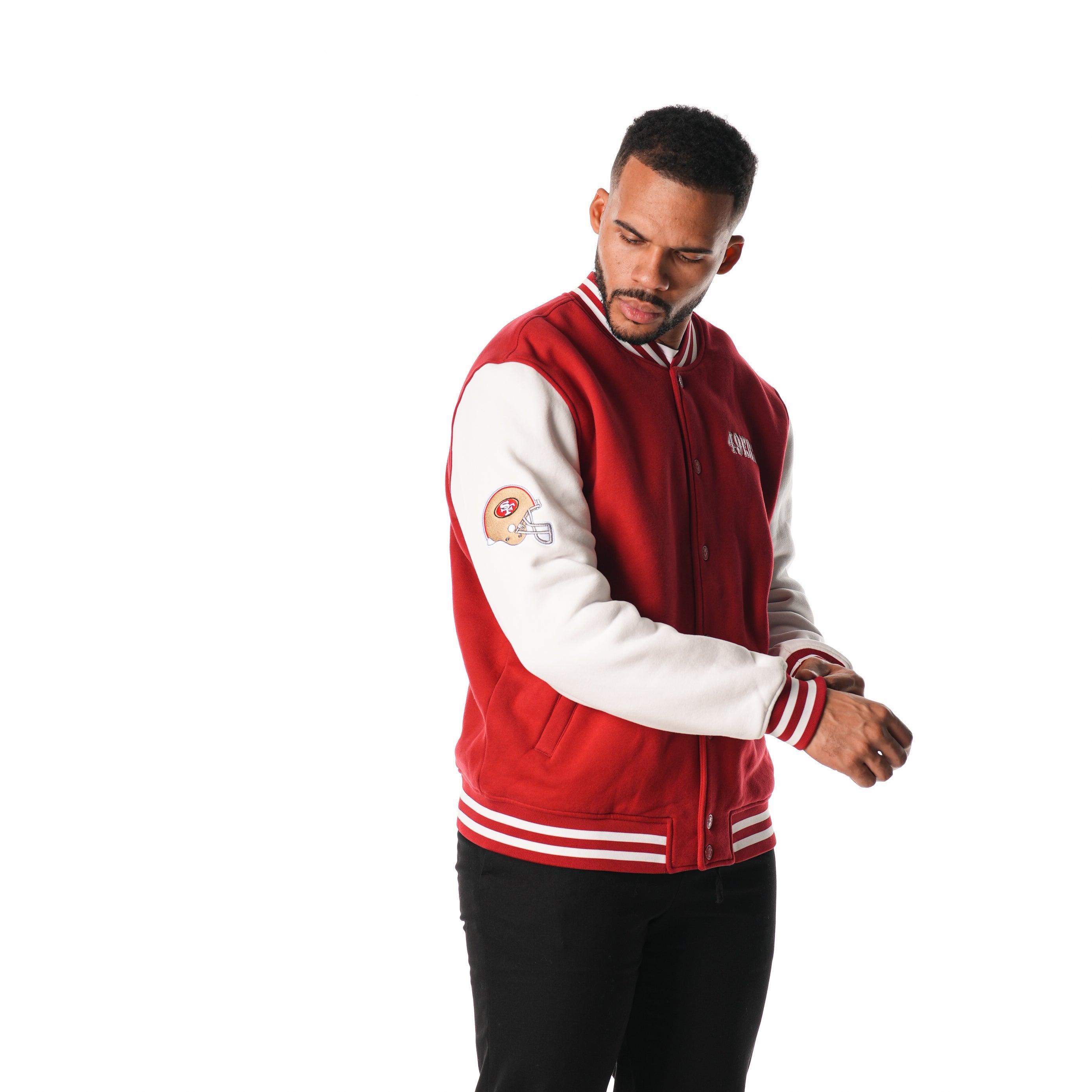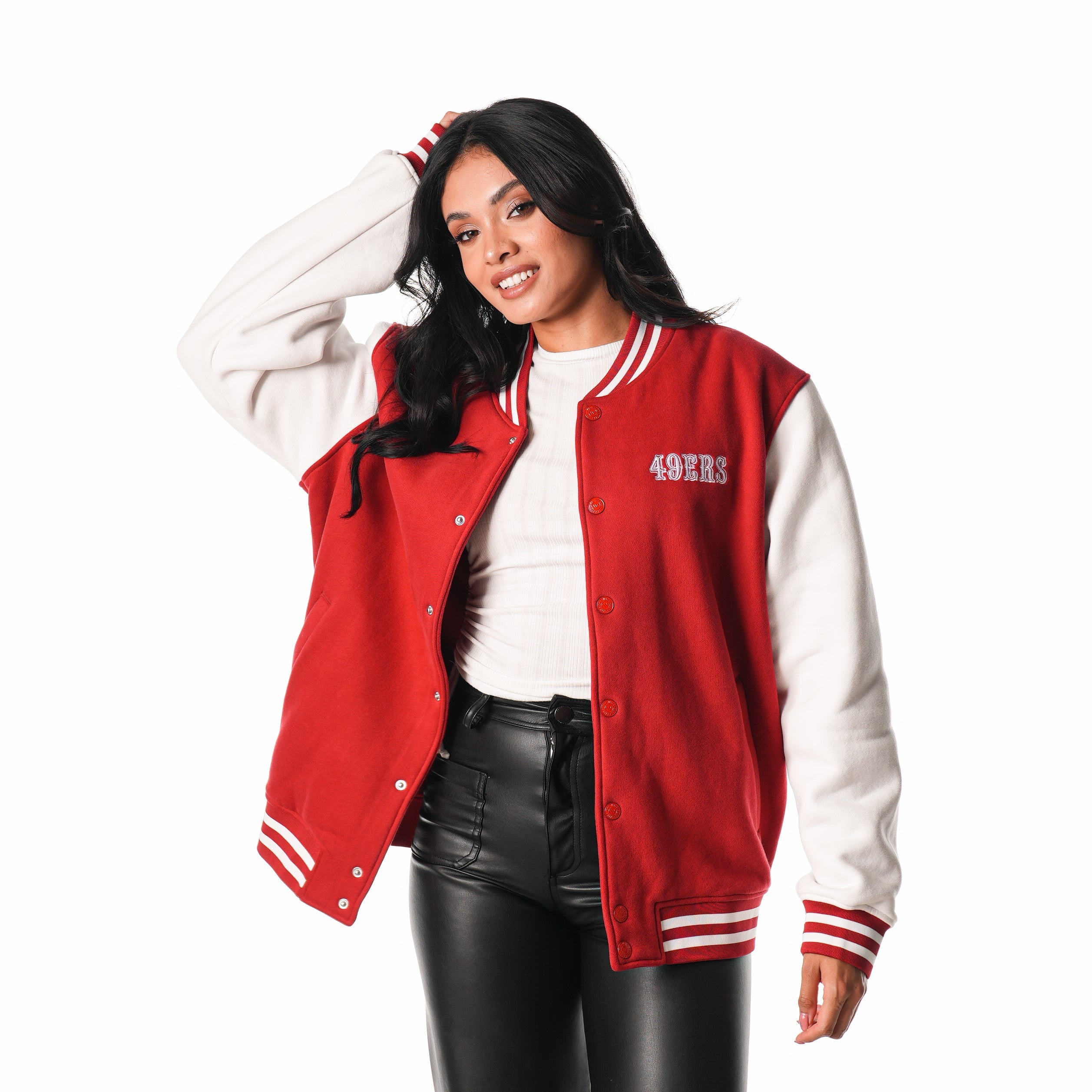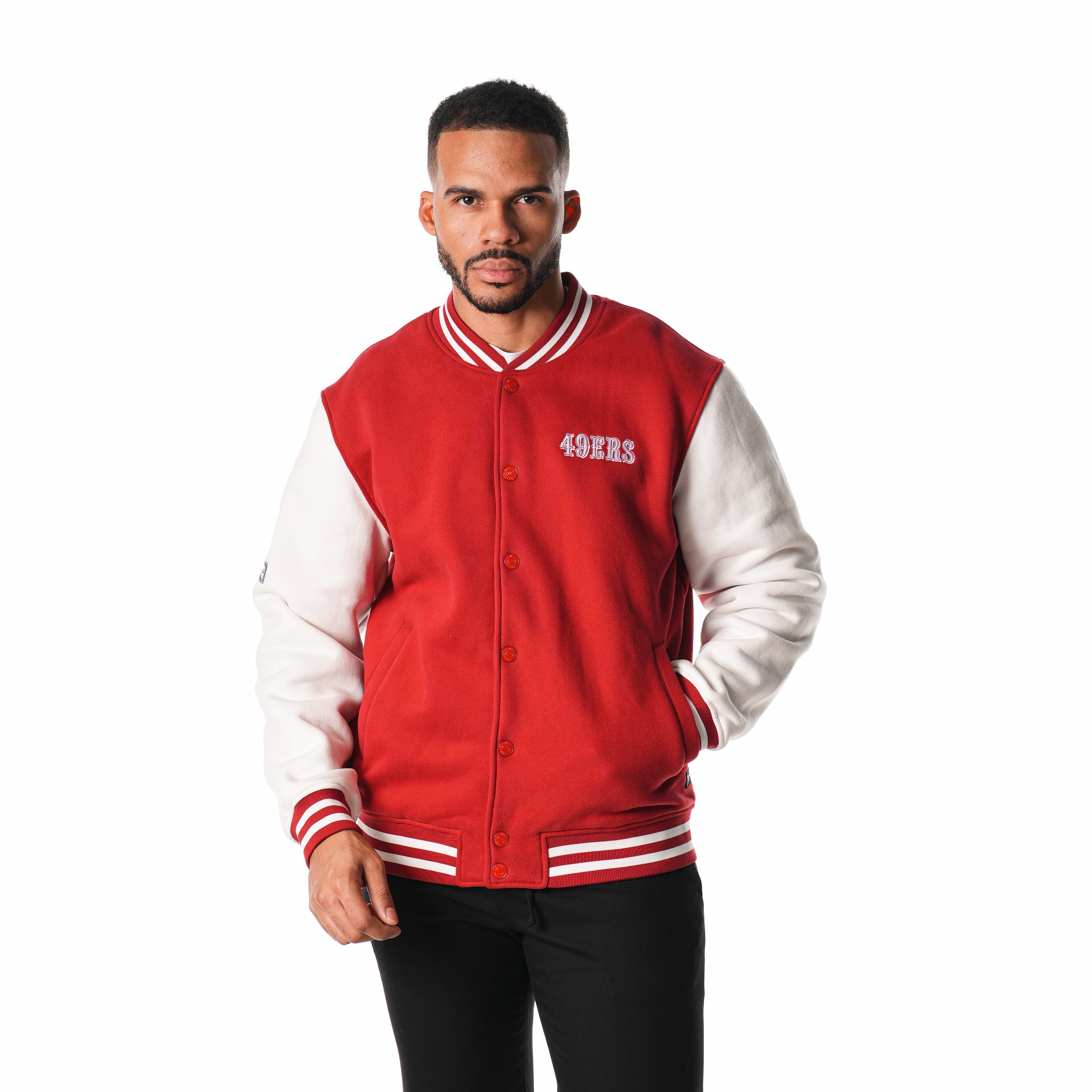 Stay warm and show off your team spirit with the San Francisco 49ers Unisex Fleece Bomber in bold red. This bomber jacket is made of soft fleece for ultimate comfort and features the iconic 49ers logo. Perfect for any fan!