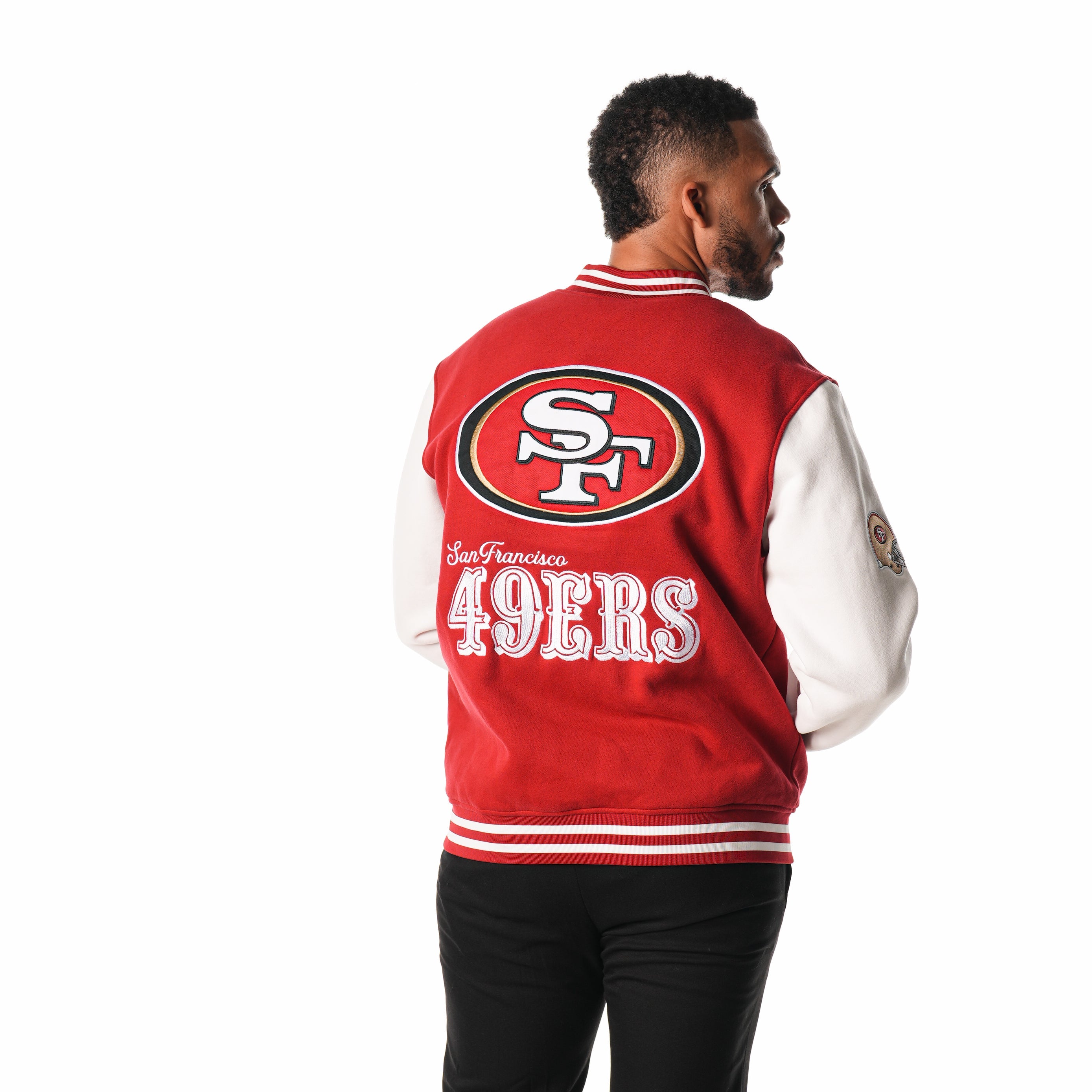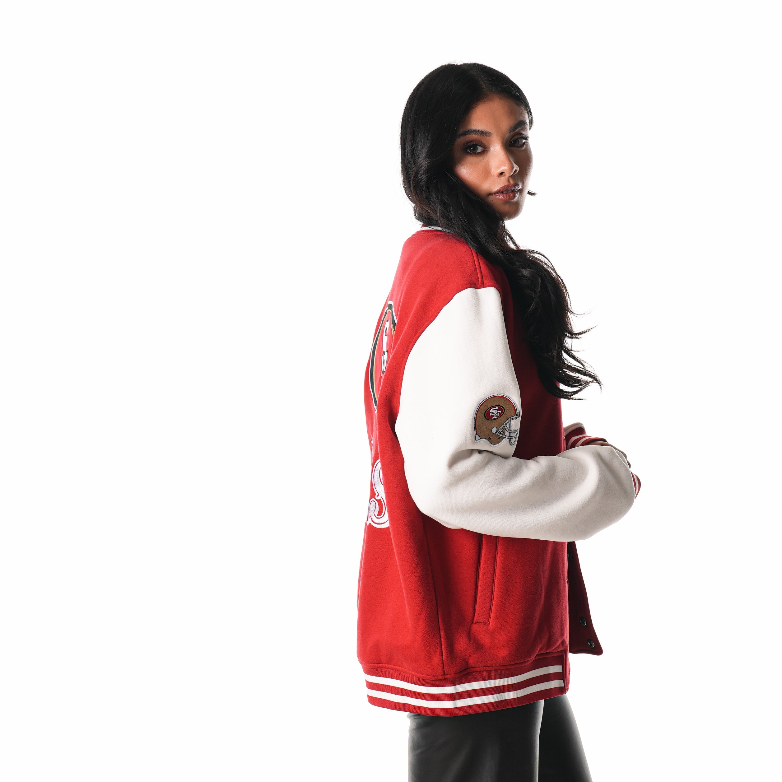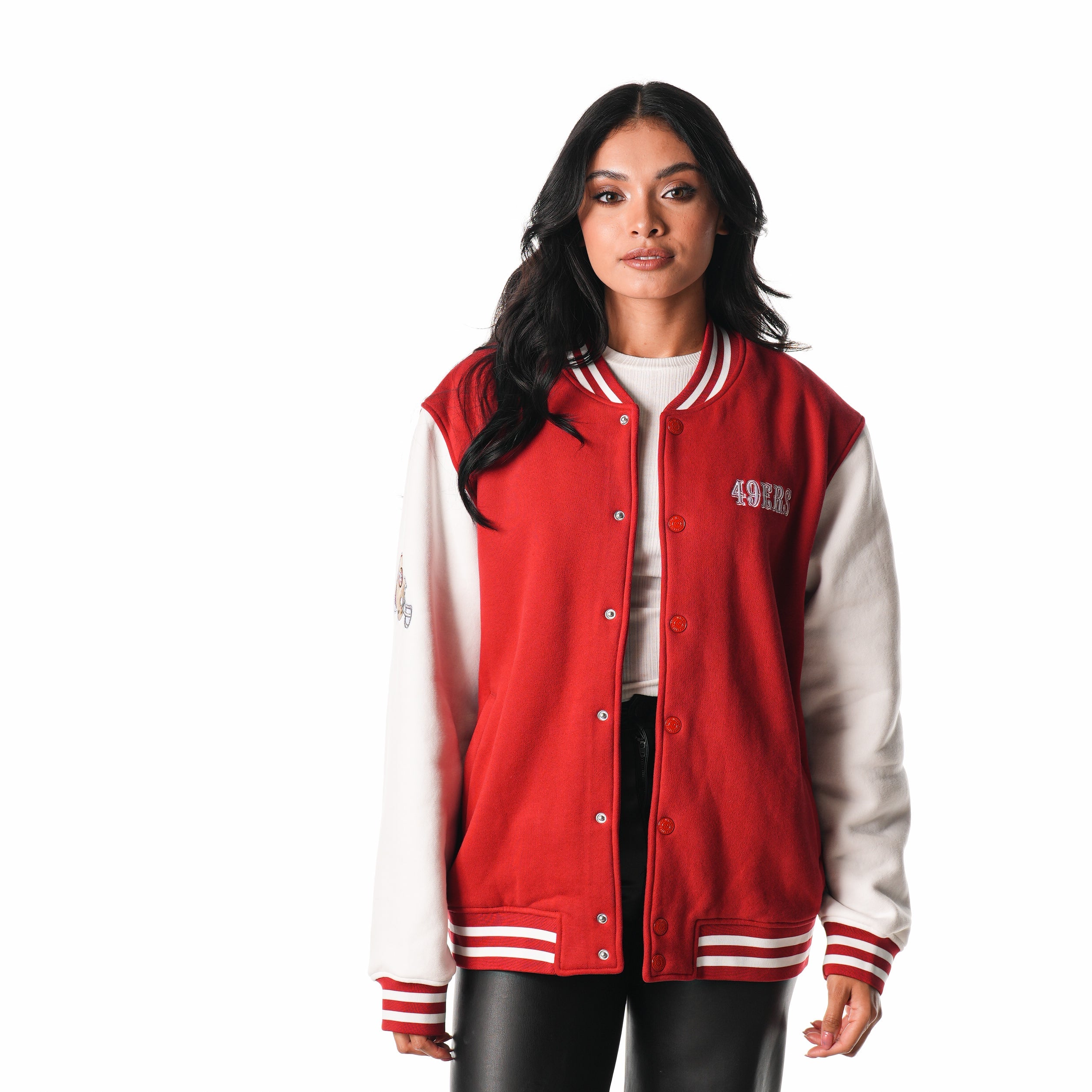 Stay warm and show off your team spirit with the San Francisco 49ers Unisex Fleece Bomber in bold red. This bomber jacket is made of soft fleece for ultimate comfort and features the iconic 49ers logo. Perfect for any fan!