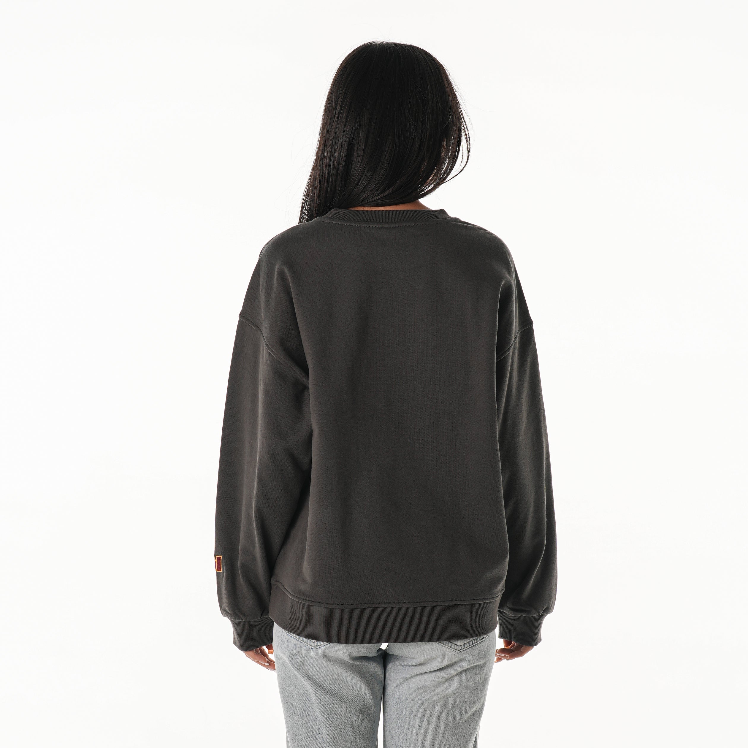 Rep the Commanders in this oversized crew fleece, featuring bold crystal-detailed graphics across the chest and team hits on the sleeve. Designed in charcoal fleece for a sleek game day or everyday look.